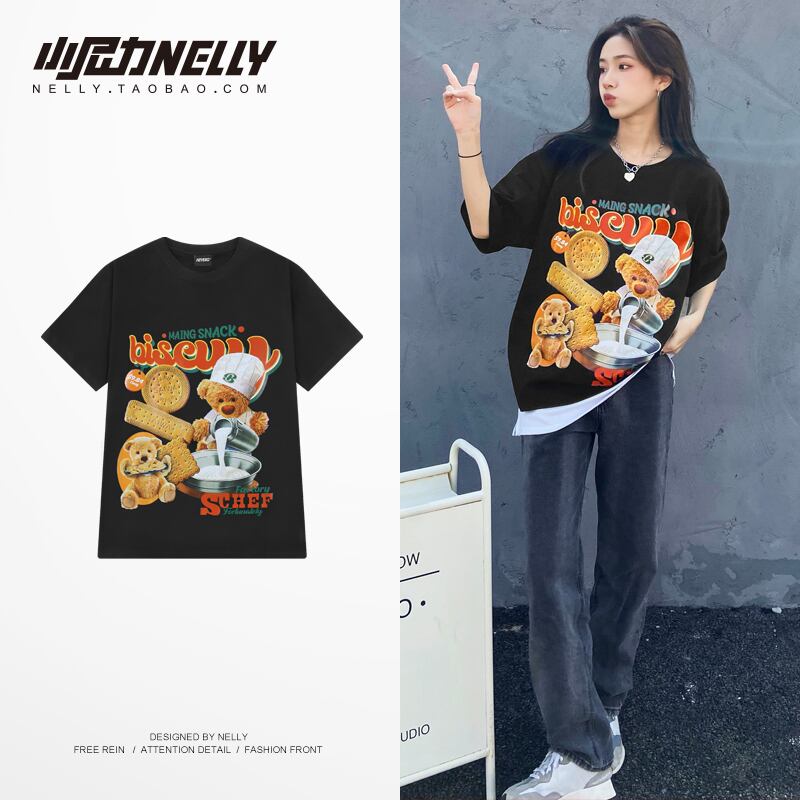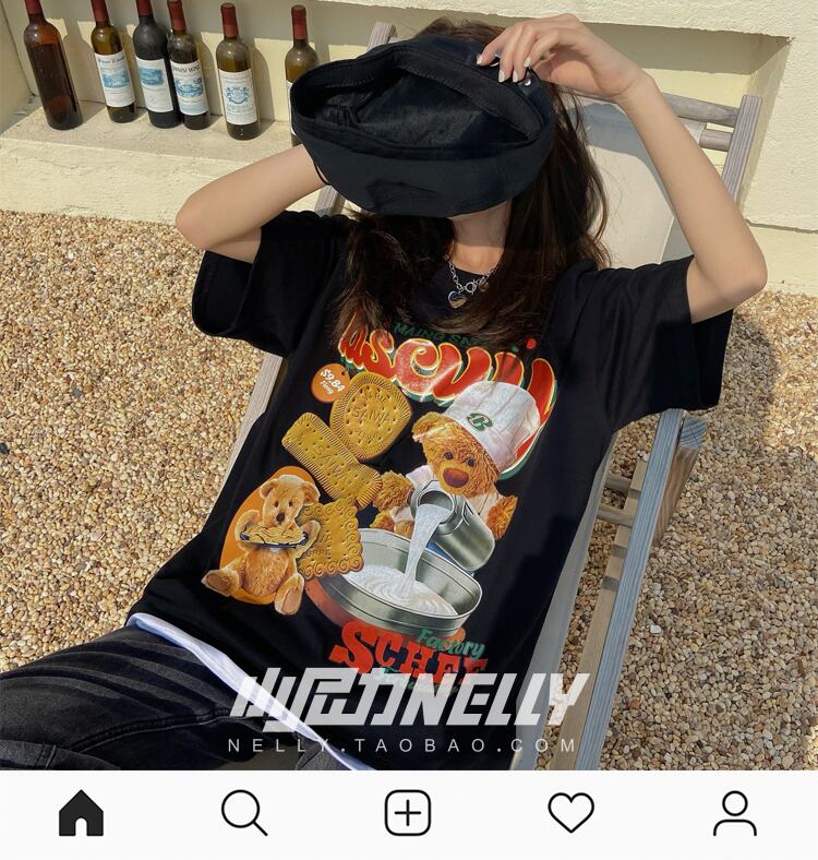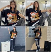 自然派プリント柄Tシャツ レディースルーズトップス ストリート 12/9 メンズ アパレル 秋 冬 mi1727333423954