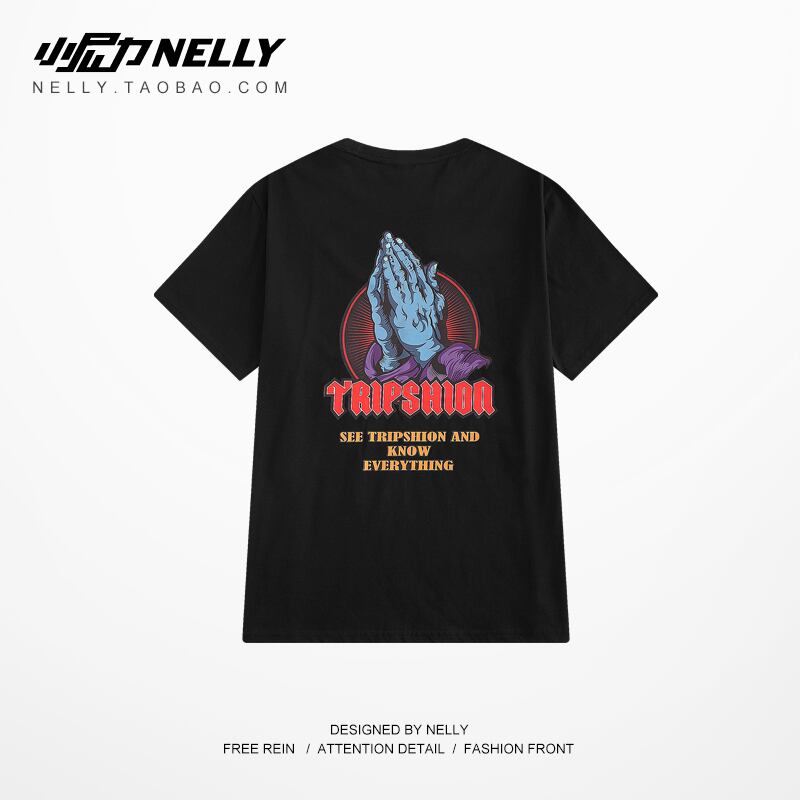 スタンダードカジュアルTシャツ サマールーズプリント柄ラウンドネック レトロ ストリート かわいい 夏物 Oネック 12/9 メンズ アパレル 秋 冬 mi1791118018715