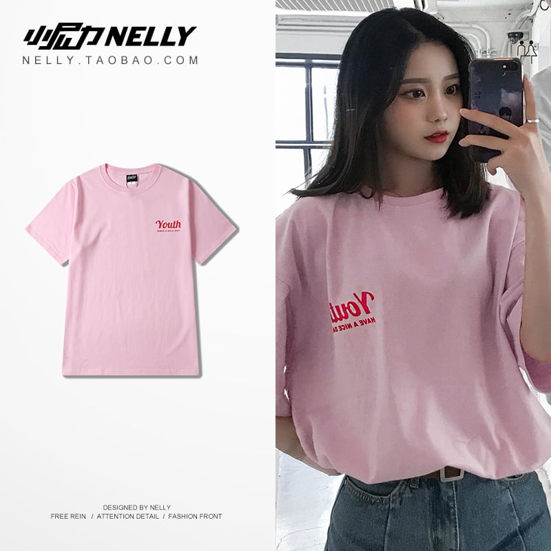 Tシャツ ルーズサマー ピンク コットン 半袖 ハーフスリーブ 夏物 ステッチ 12/9 メンズ アパレル 秋 冬 mi1717271086682