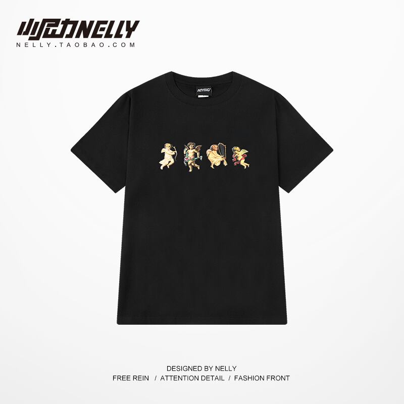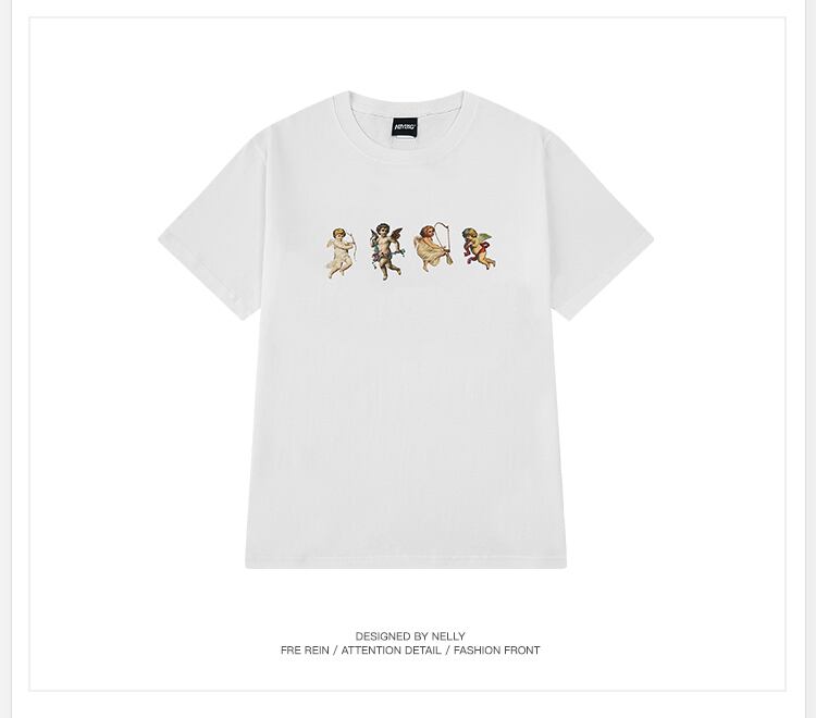 サマープリント柄ルーズブラックホワイトTシャツ トップス コットン 大人ガーリー スウィート キュート カジュアル 夏物 12/9 メンズ アパレル 秋 冬 mi1765522756401