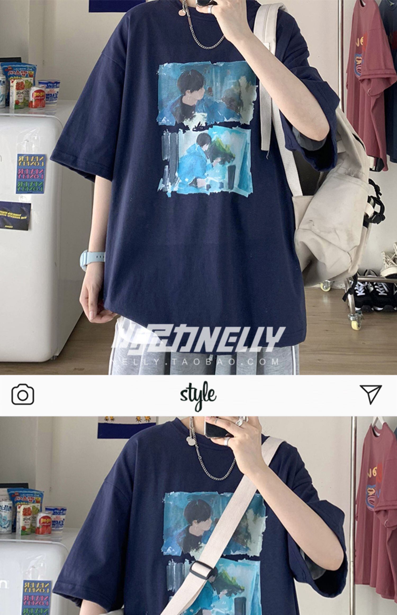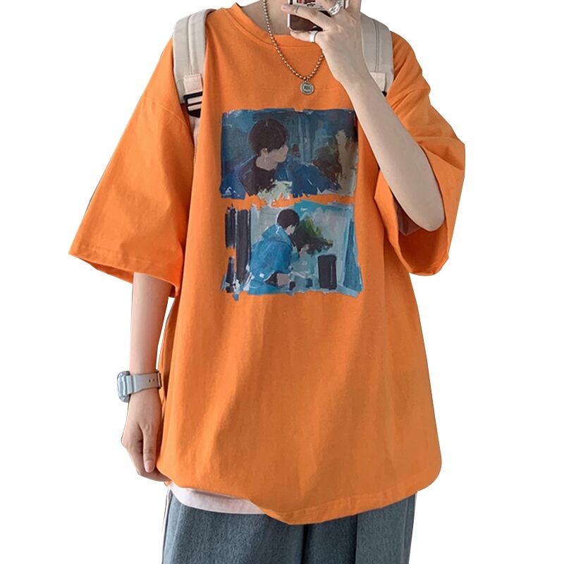 プリントスリーブTシャツ サマースタイルルーズトップス 大きめサイズ 夏物 12/9 メンズ アパレル 秋 冬 mi1713617825446