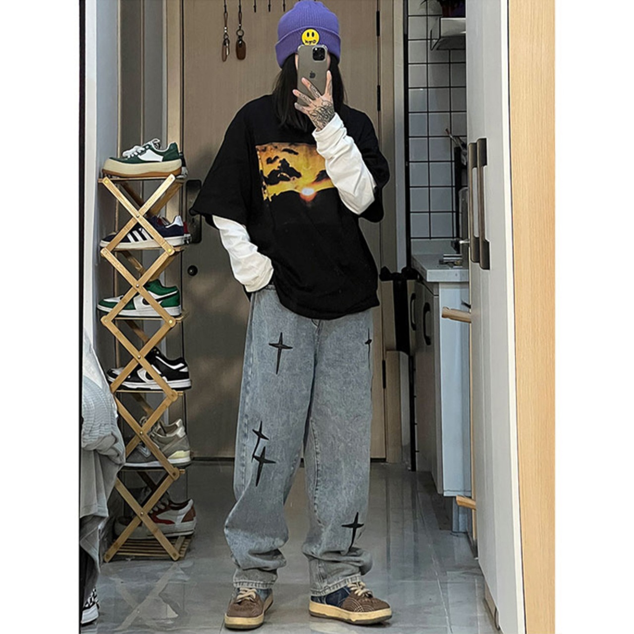 レザークロスジーンズ 自然派ルーズ ストリート 12/9 メンズ アパレル 秋 冬 mi1730826700677