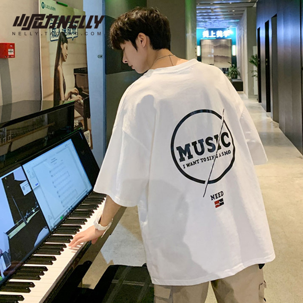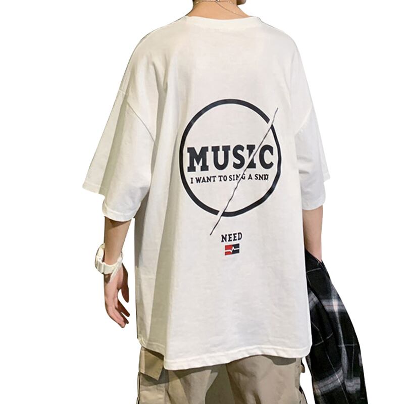 サマーTシャツ シャツ レディースブラックラウンドネックプリント 夏物 Oネック 12/9 メンズ アパレル 秋 冬 mi1735746885012