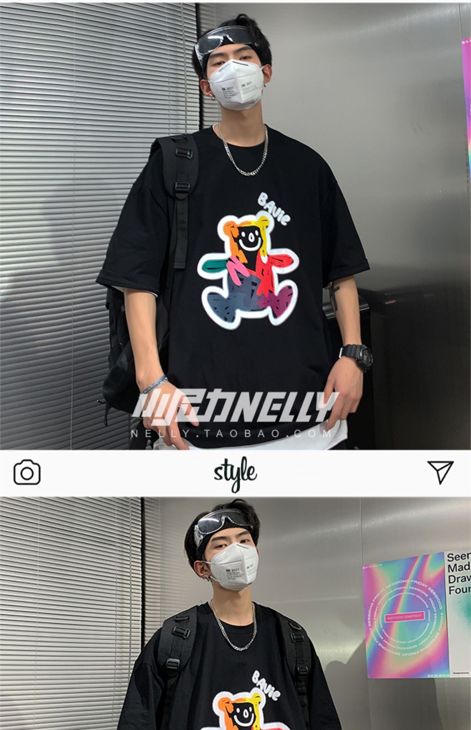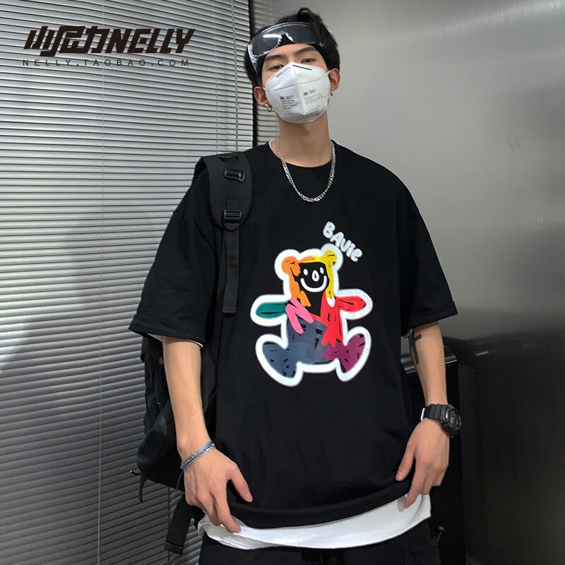 プリント柄ブラックTシャツ レディースルーズスタイル 大人ガーリー スウィート キュート カジュアル かわいい 12/9 メンズ アパレル 秋 冬 mi177594672922