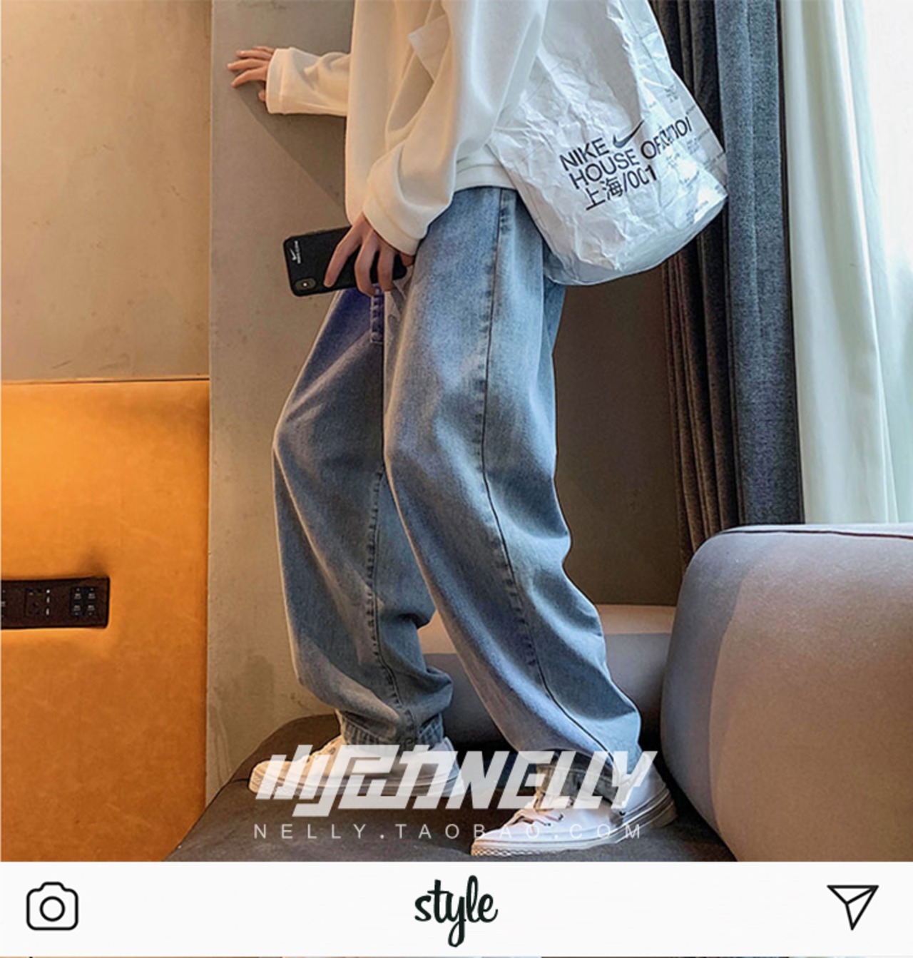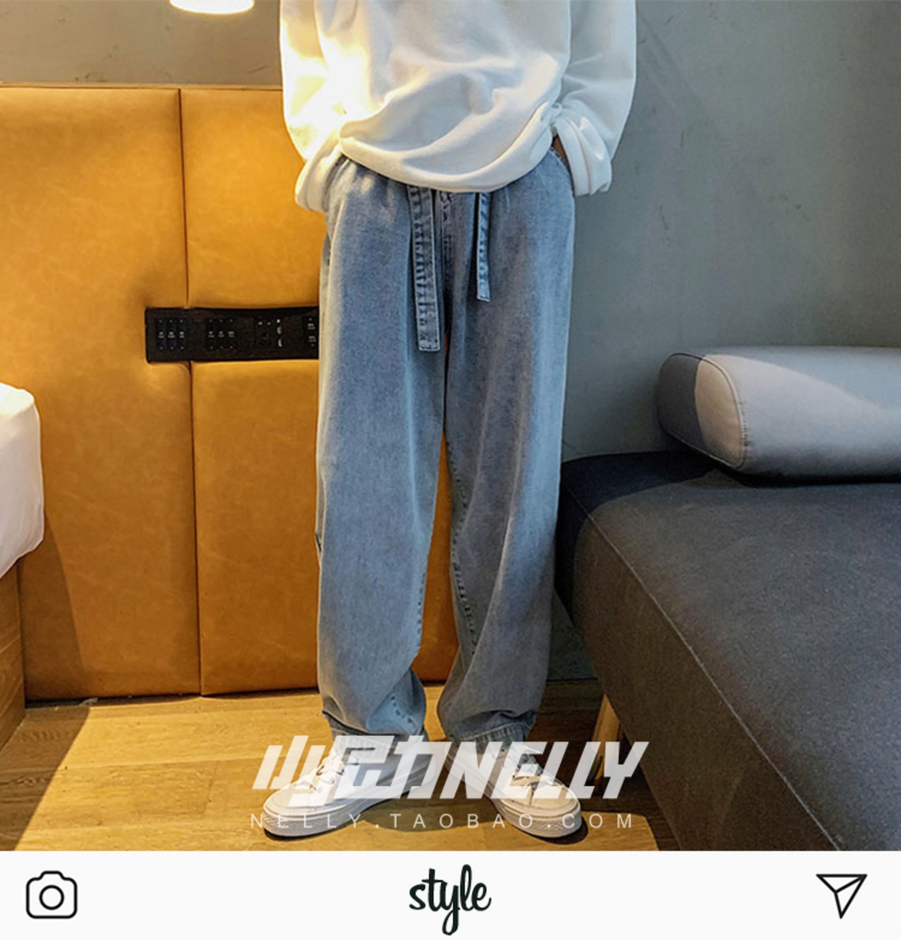 スタンダードハイウェストウェスト薄手パンツ ルーズワイドレッグジーンズ レトロ ワイドパンツ 12/9 メンズ アパレル 秋 冬 mi1760436437790