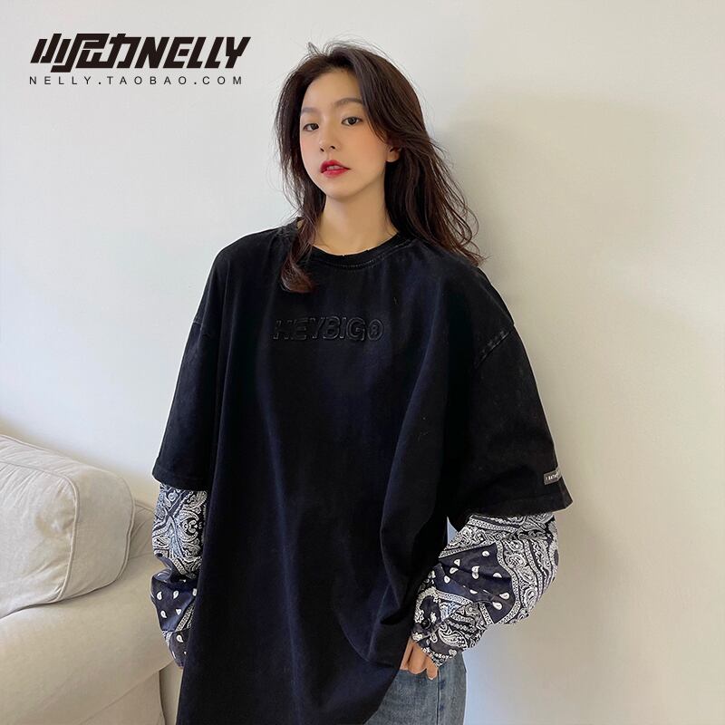 Tシャツ スプリングオータムスタイルルーズFlowerデザイン セーター プリントトップス ロング 春物 秋物 フラワーデザイン ステッチ 12/9 メンズ アパレル 秋 冬 mi1742354827644