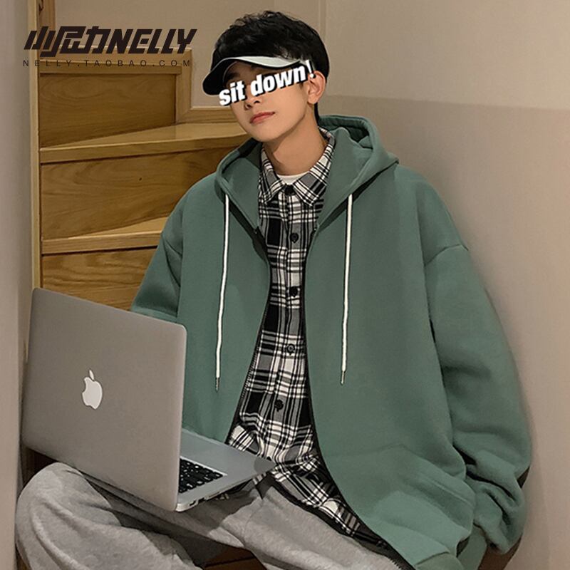 グレーカーディガンセーター スプリングオータムルーズカジュアルフードジッパージャケット 春物 秋物 12/9 メンズ アパレル 秋 冬 mi1719256923535