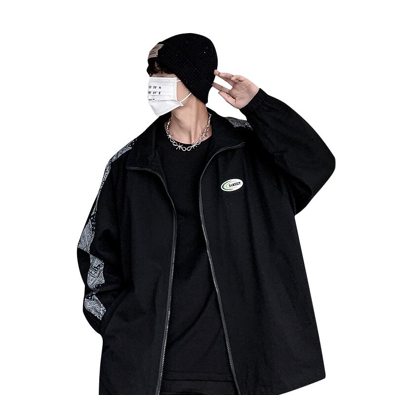 Flowerデザイン ジャケット オータムルーズスタイルカジュアルトップス 秋物 フラワーデザイン 12/9 メンズ アパレル 秋 冬 mi1751707842003