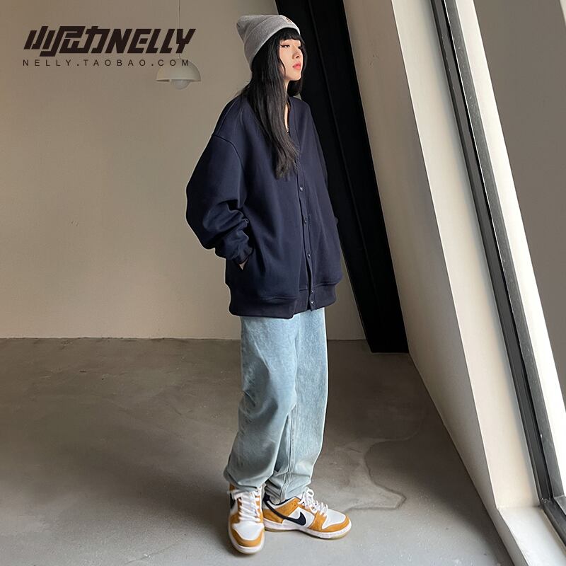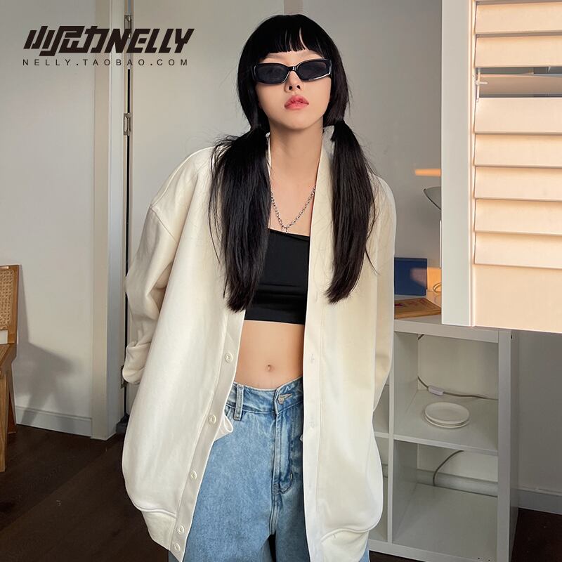 カジュアルソリッド カラーVネックセーター カーディガンニットレディースルーズジャケット ソリッドカラー 12/9 メンズ アパレル 秋 冬 mi1715481977292