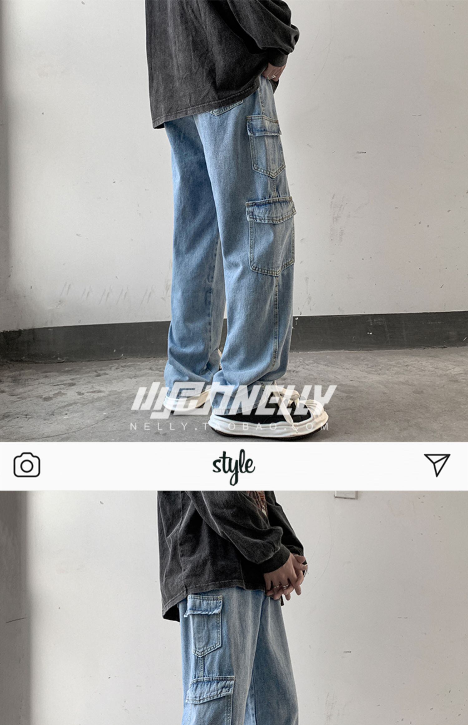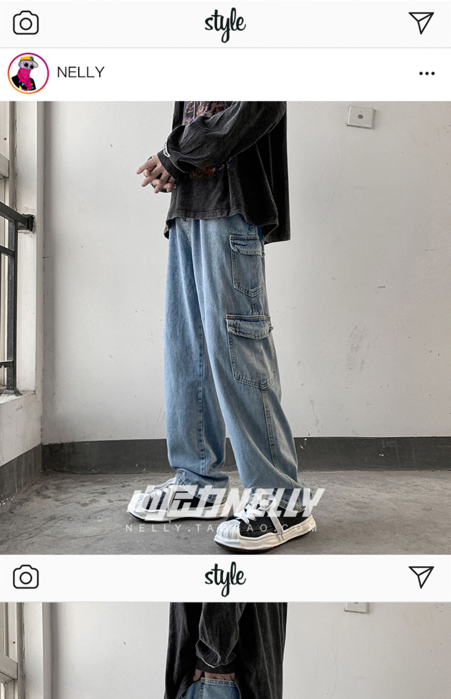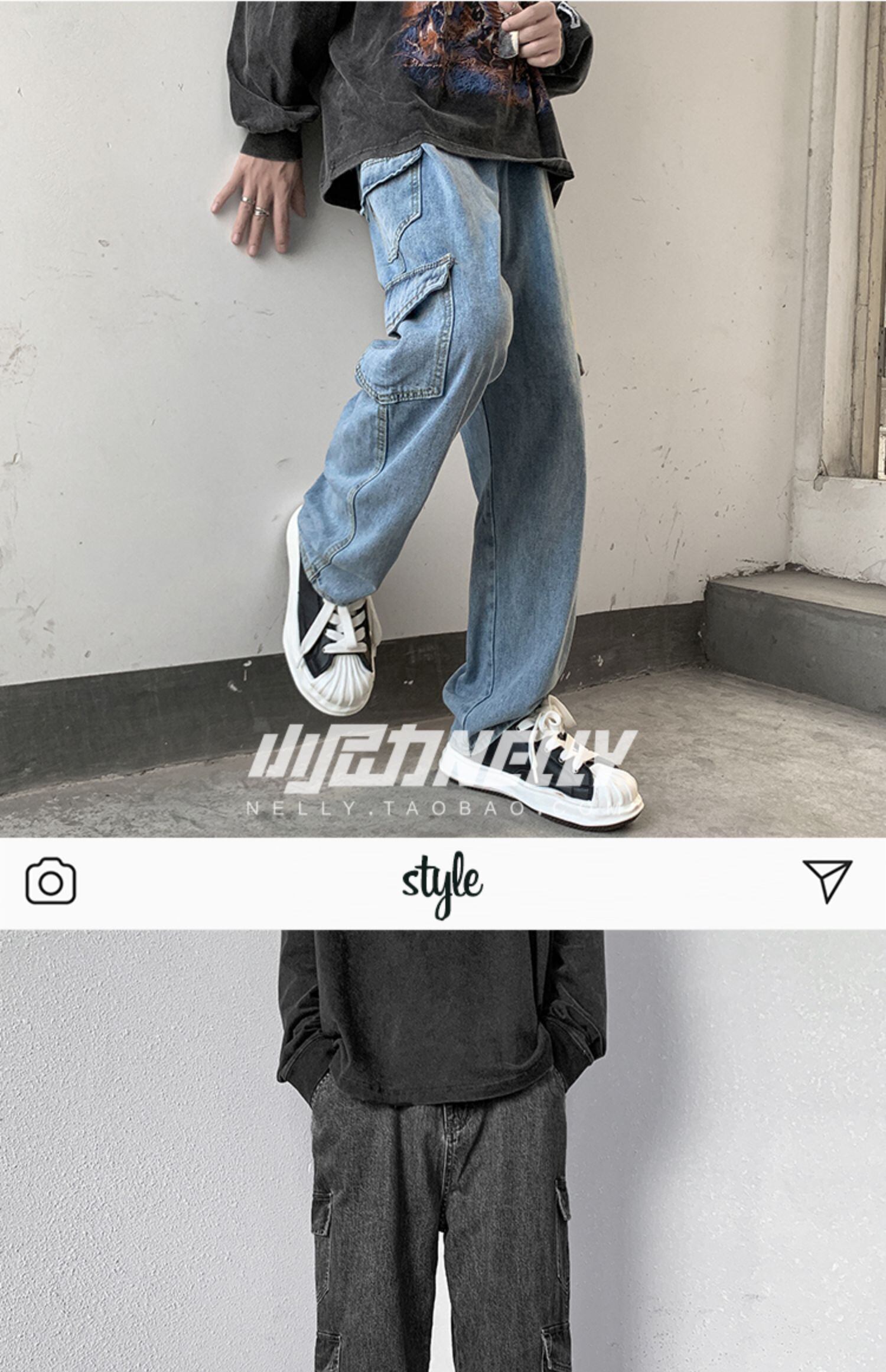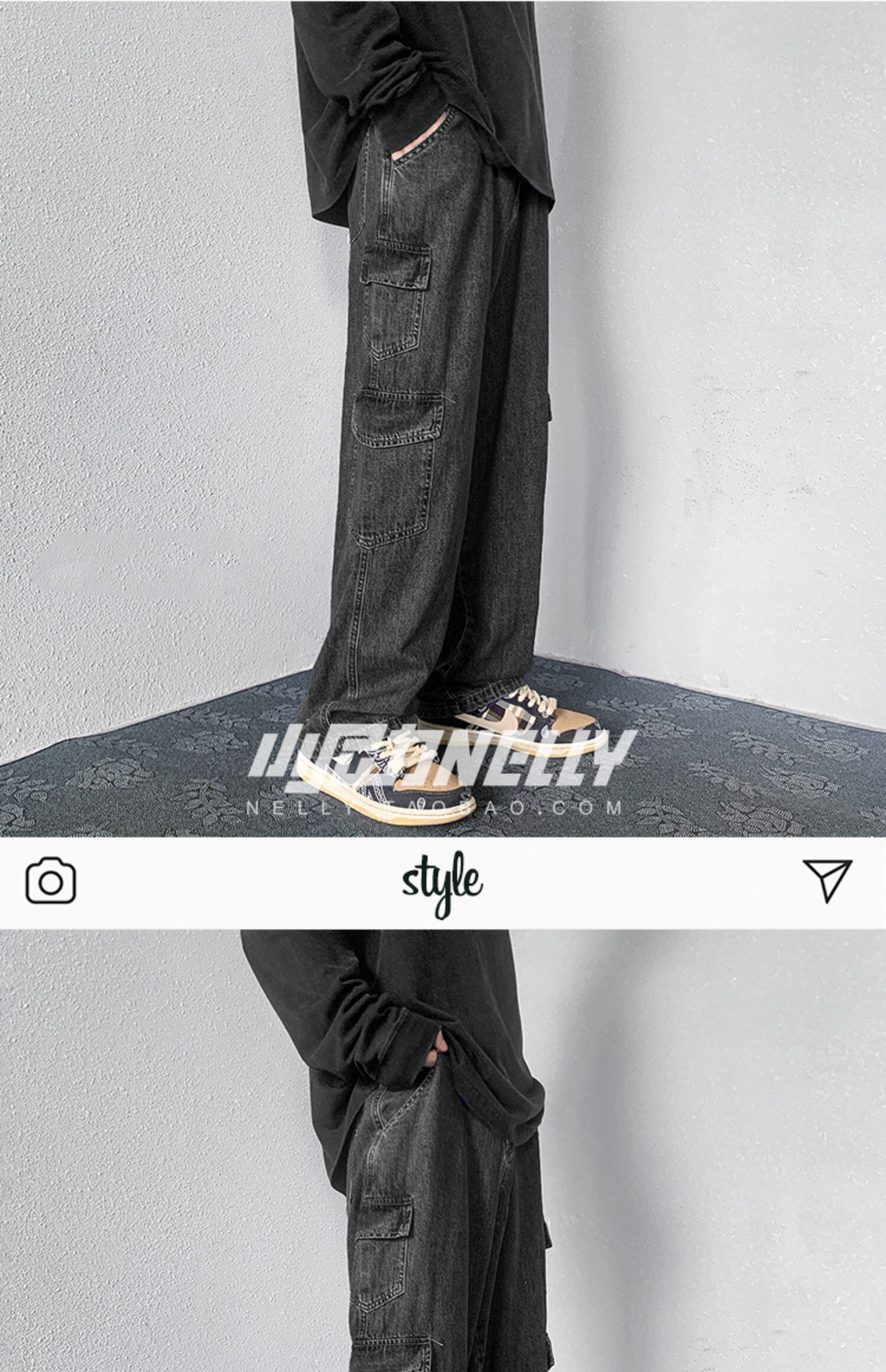 ジーンズ スプリングオータムウィンターグレールーズワイドレッグカジュアルロングパンツ 春物 秋物 冬物 ワイドパンツ 12/9 メンズ アパレル 秋 冬 mi1712795549474