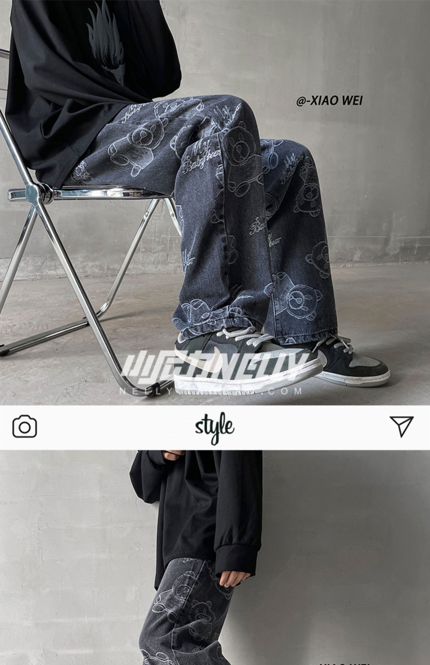 オータム自然派ジャカードジーンズ ルーズロングパンツ ストリート 秋物 12/9 メンズ アパレル 秋 冬 mi1725741970008