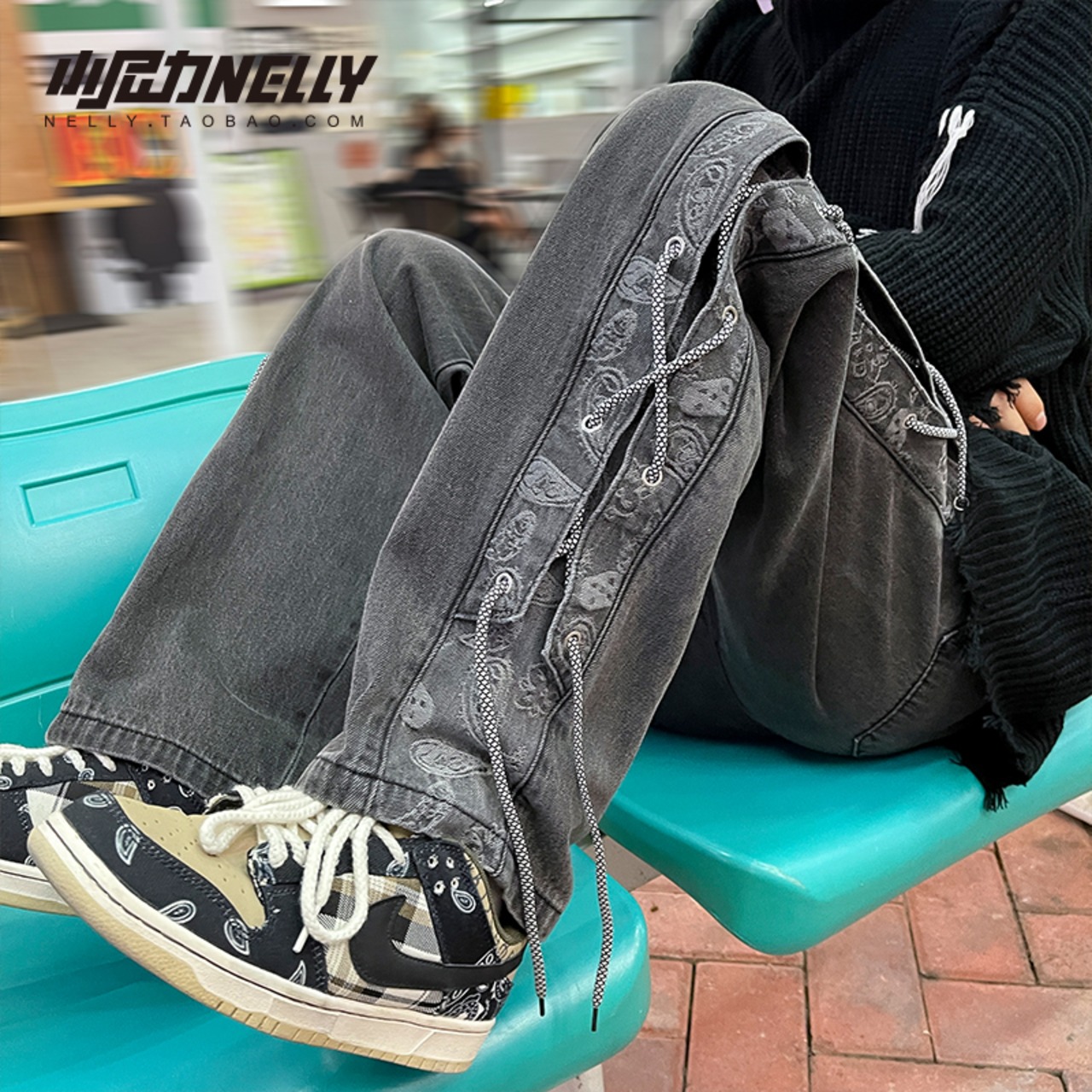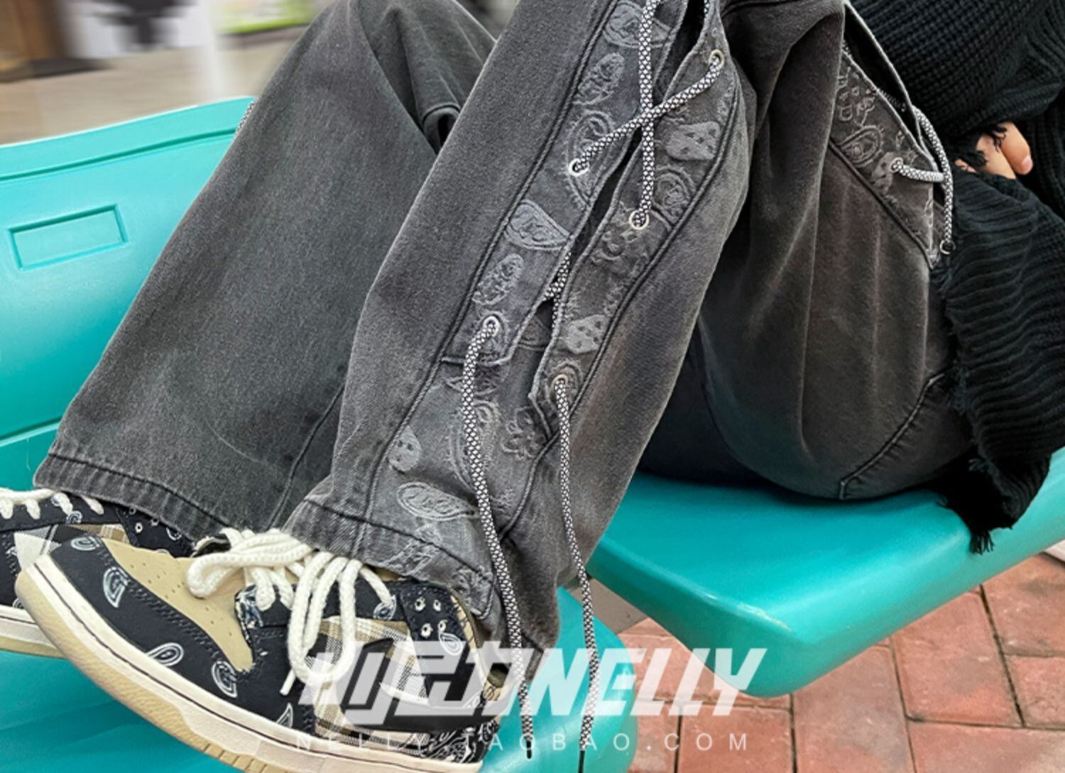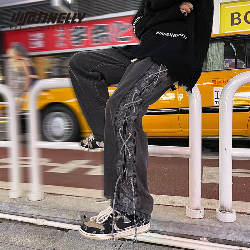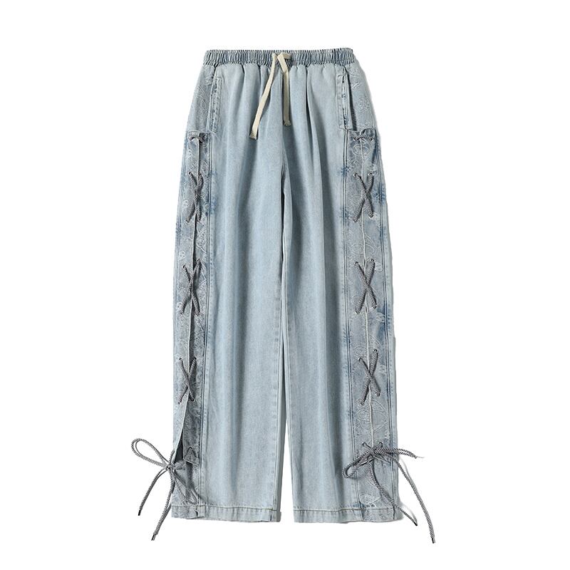 バンドギャザーFlowerデザイン ルーズカジュアルパンツ 大きめサイズ フラワーデザイン 12/9 メンズ アパレル 秋 冬 mi179127844156