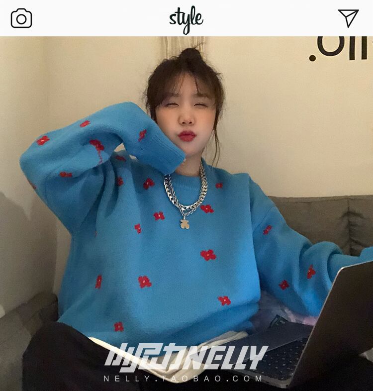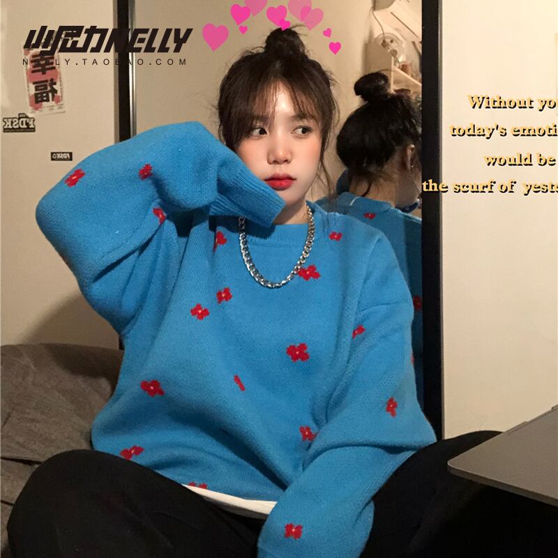 ラウンドネックセーター オータムウィンタールーズ レッド 刺繍 秋物 冬物 Oネック 12/9 メンズ アパレル 秋 冬 mi1785494112536