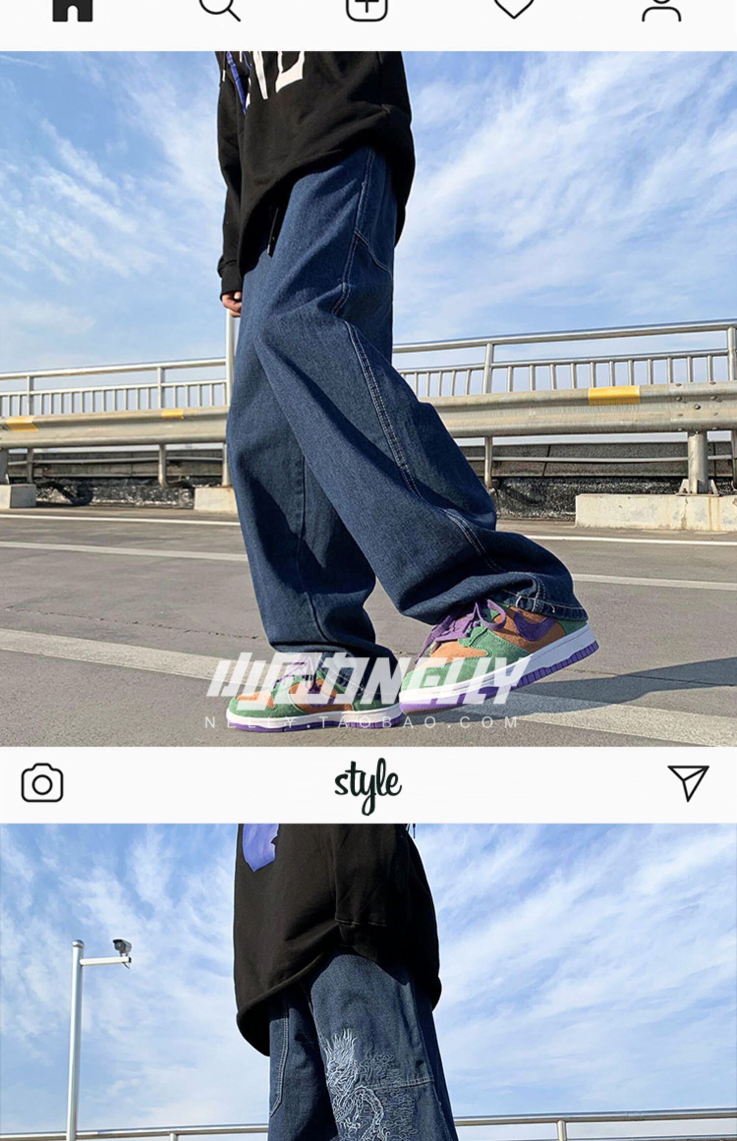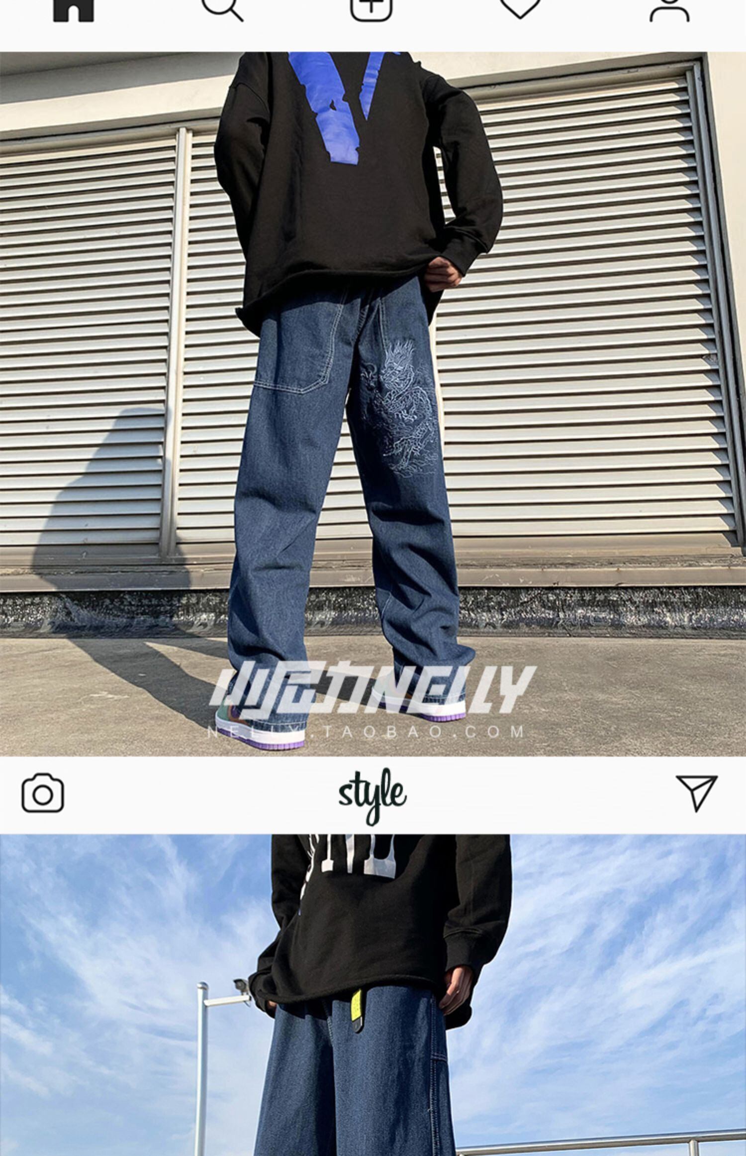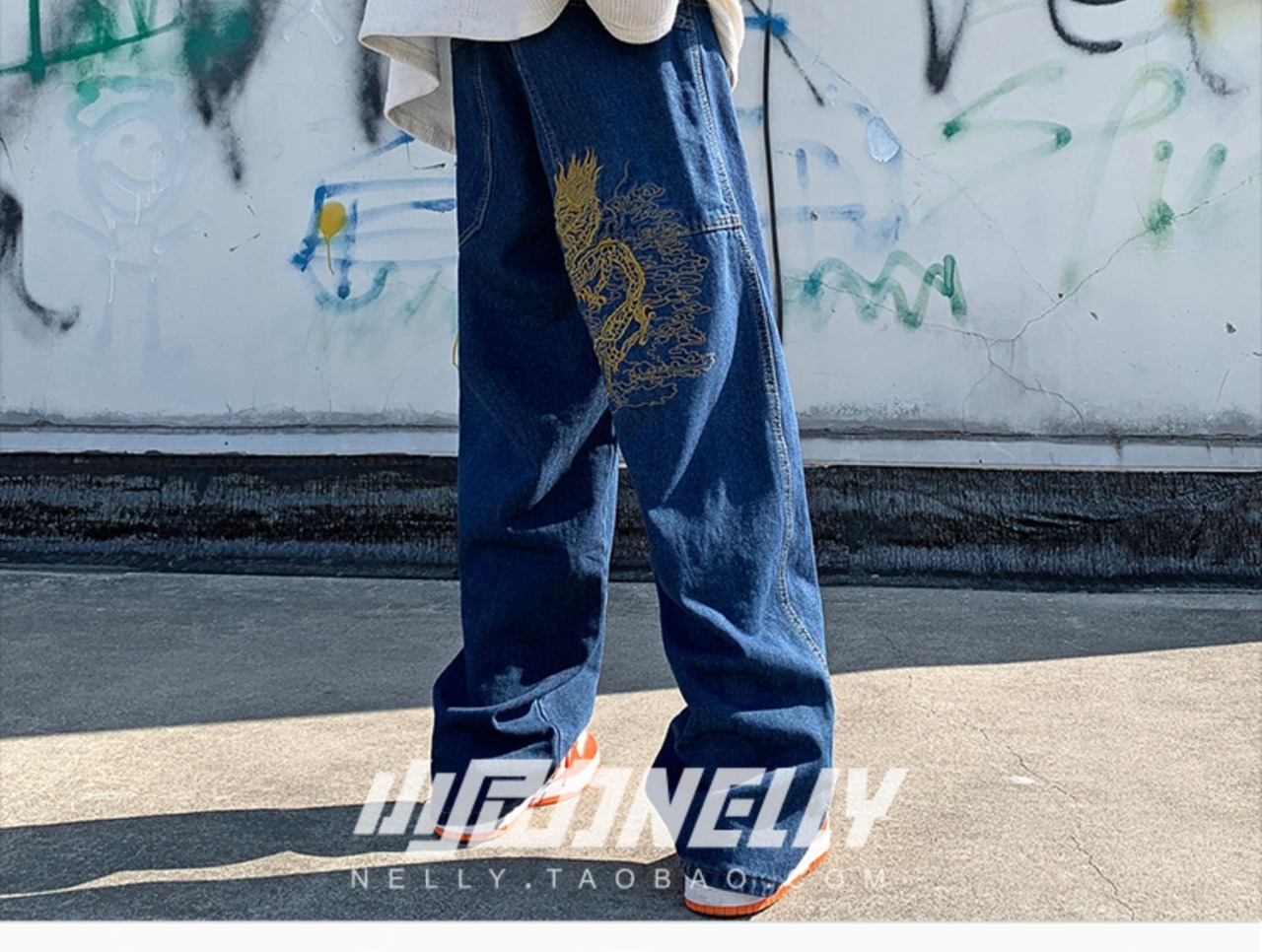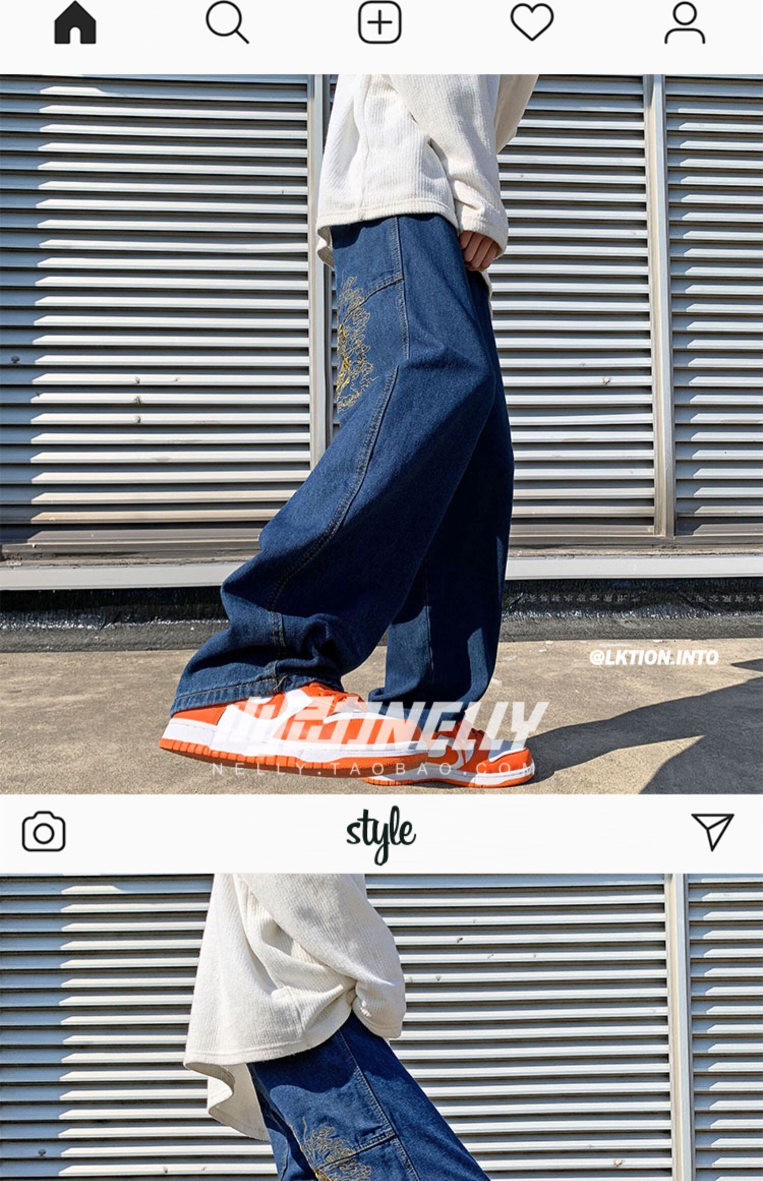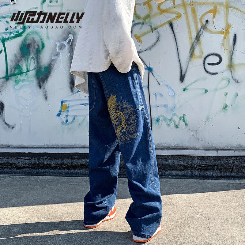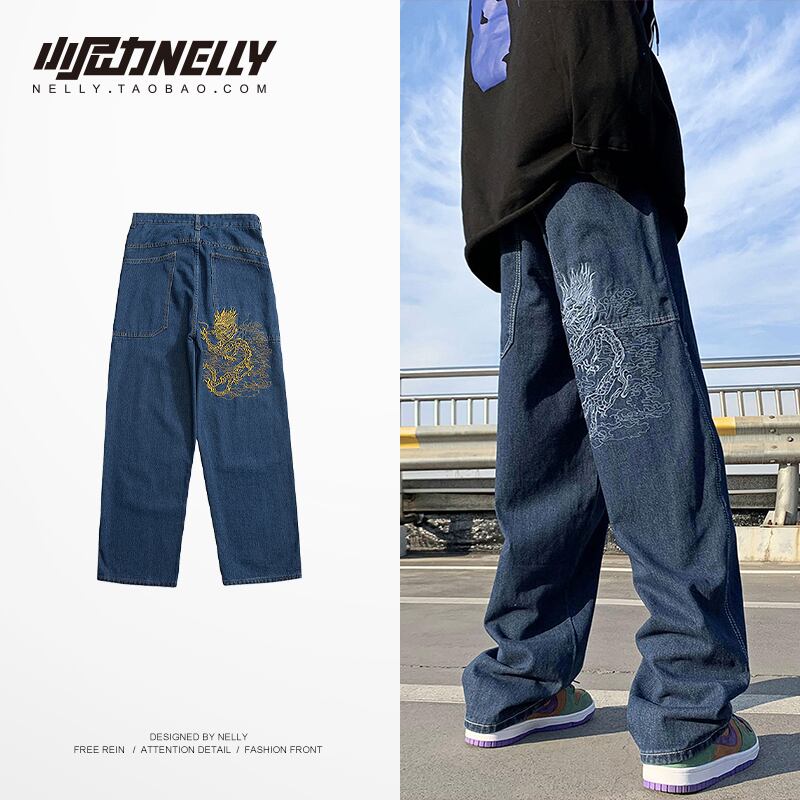 刺繍ブレストジーンズ ルーズスリムロングパンツ ストリート 12/9 メンズ アパレル 秋 冬 mi1739343349521