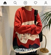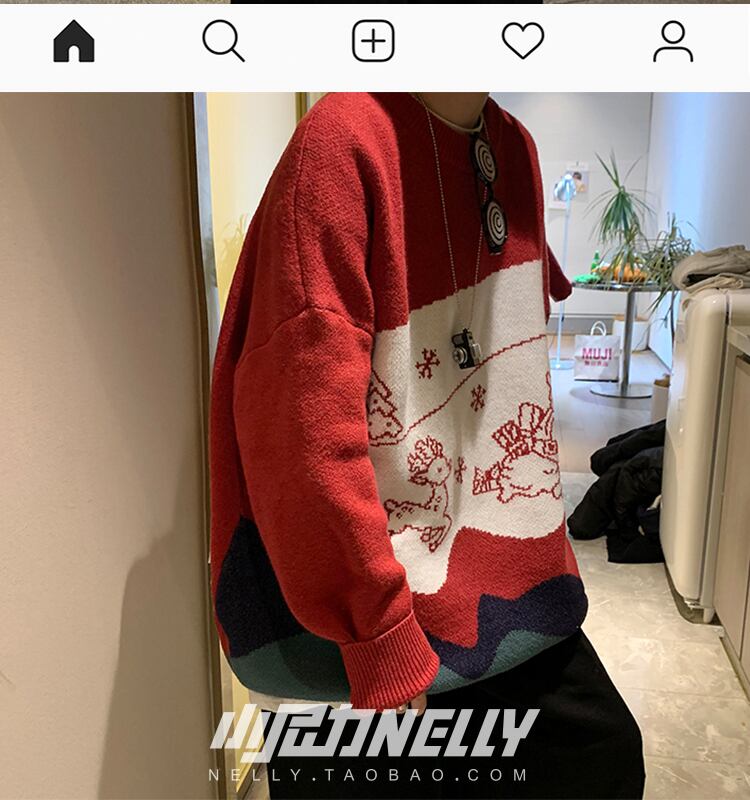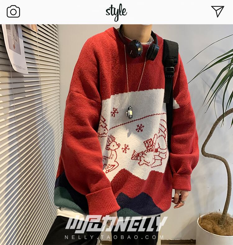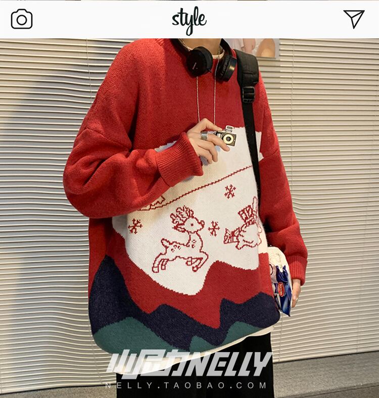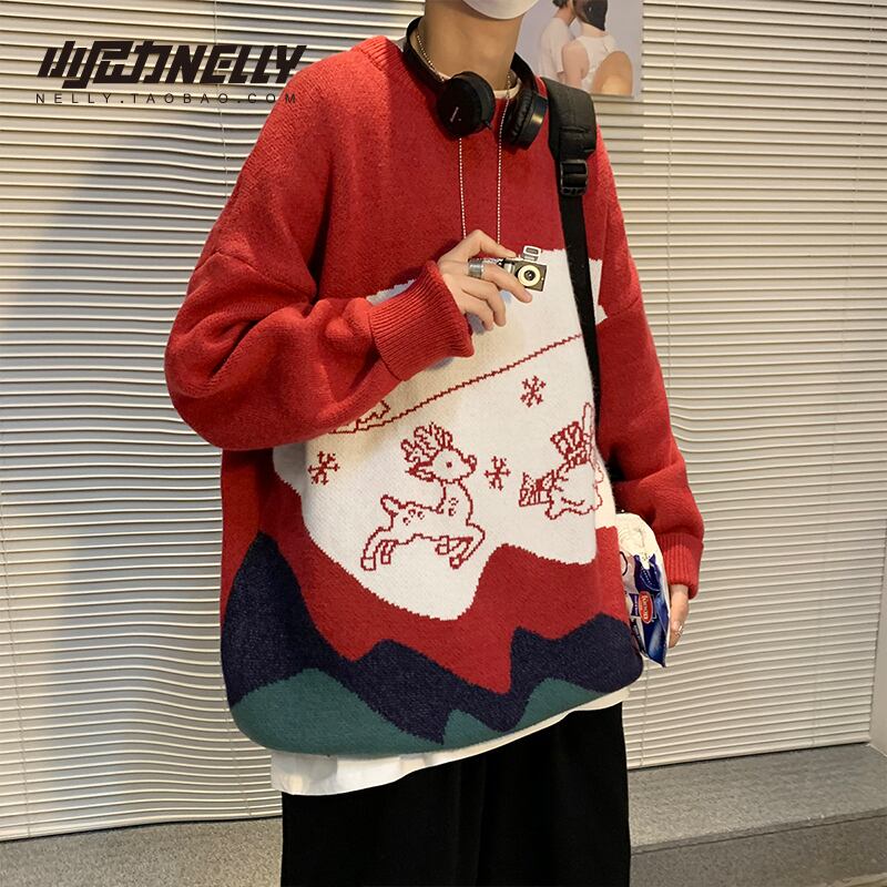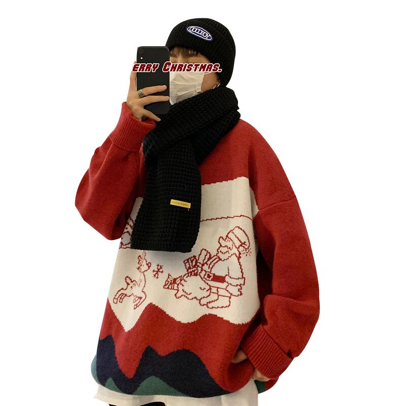 セーター オータムウィンターレッドジャカードニットルーズ 秋物 冬物 12/9 メンズ アパレル 秋 冬 mi1738482421097