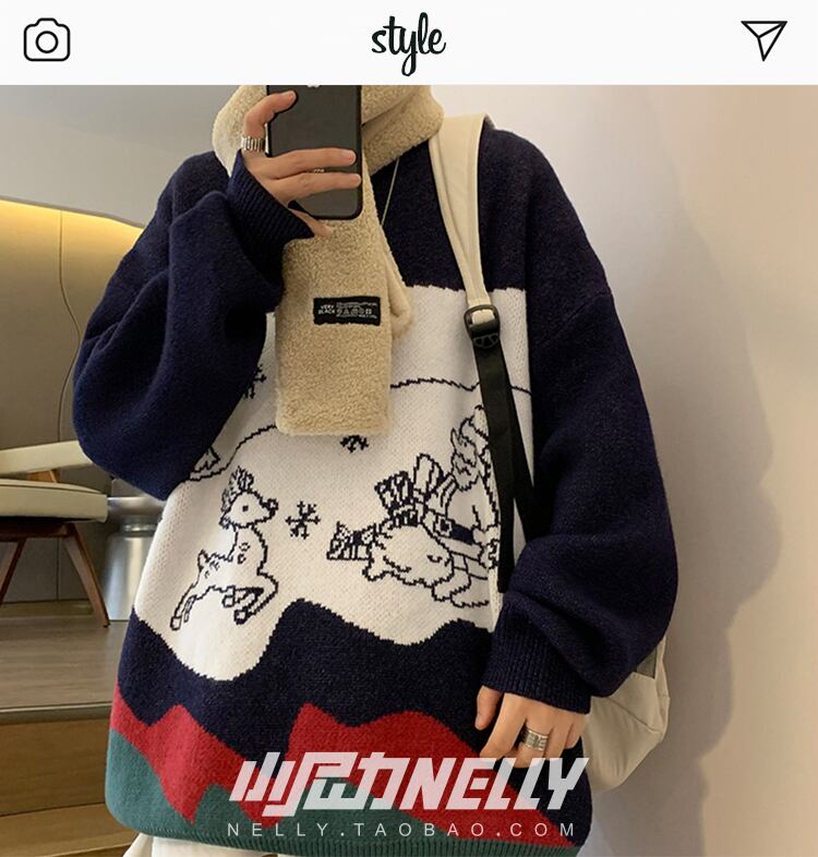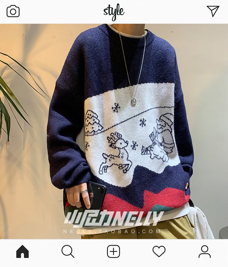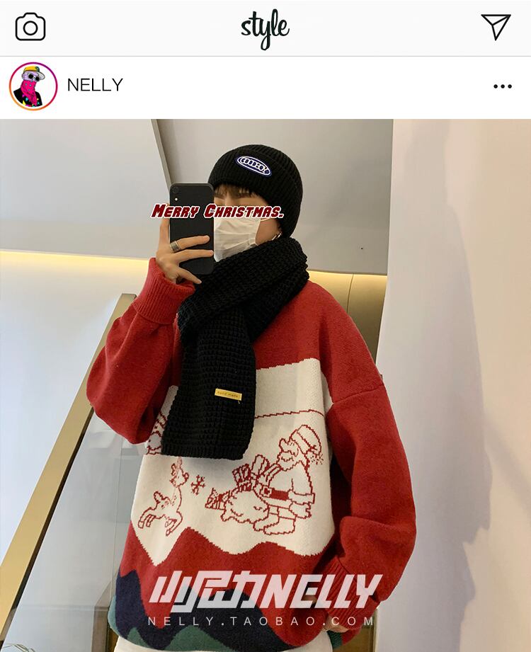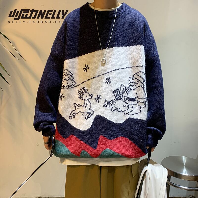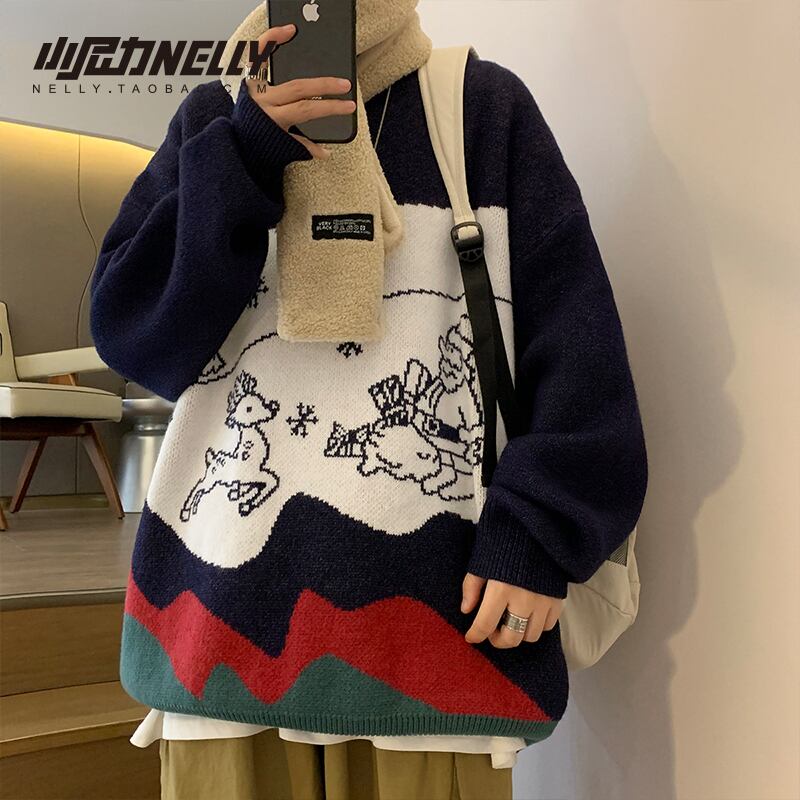 セーター オータムウィンターレッドジャカードニットルーズ 秋物 冬物 12/9 メンズ アパレル 秋 冬 mi1738482421097