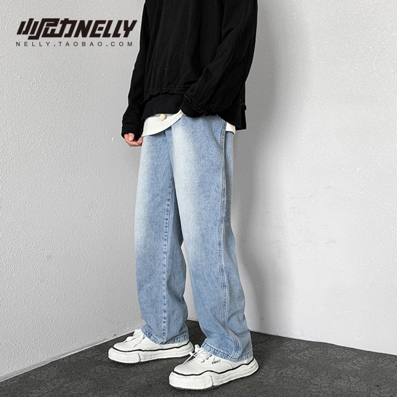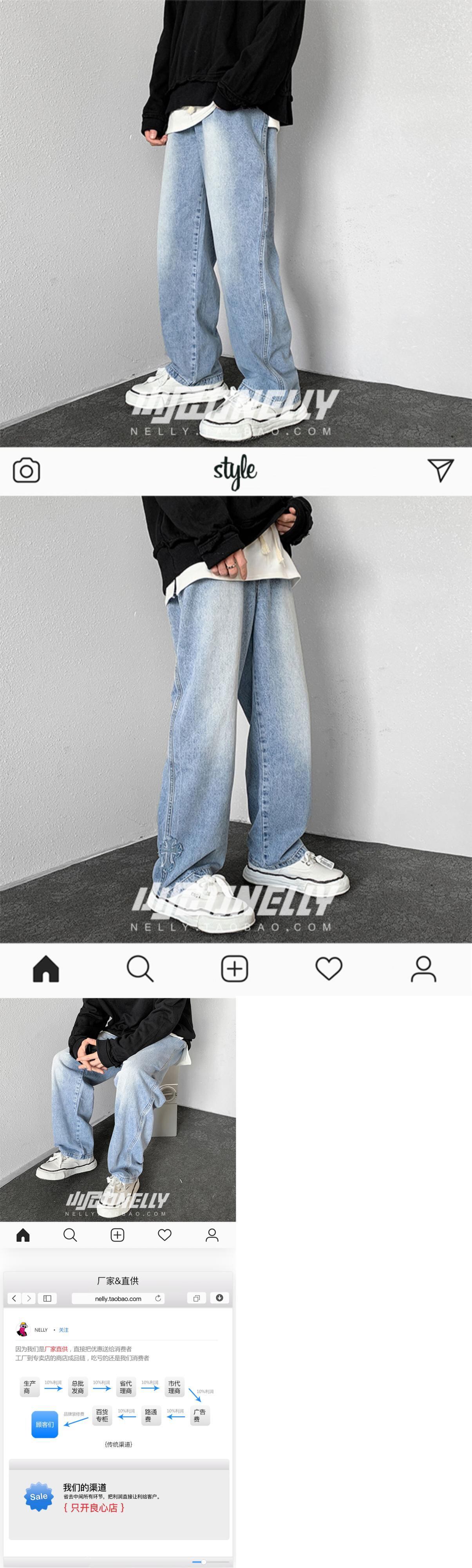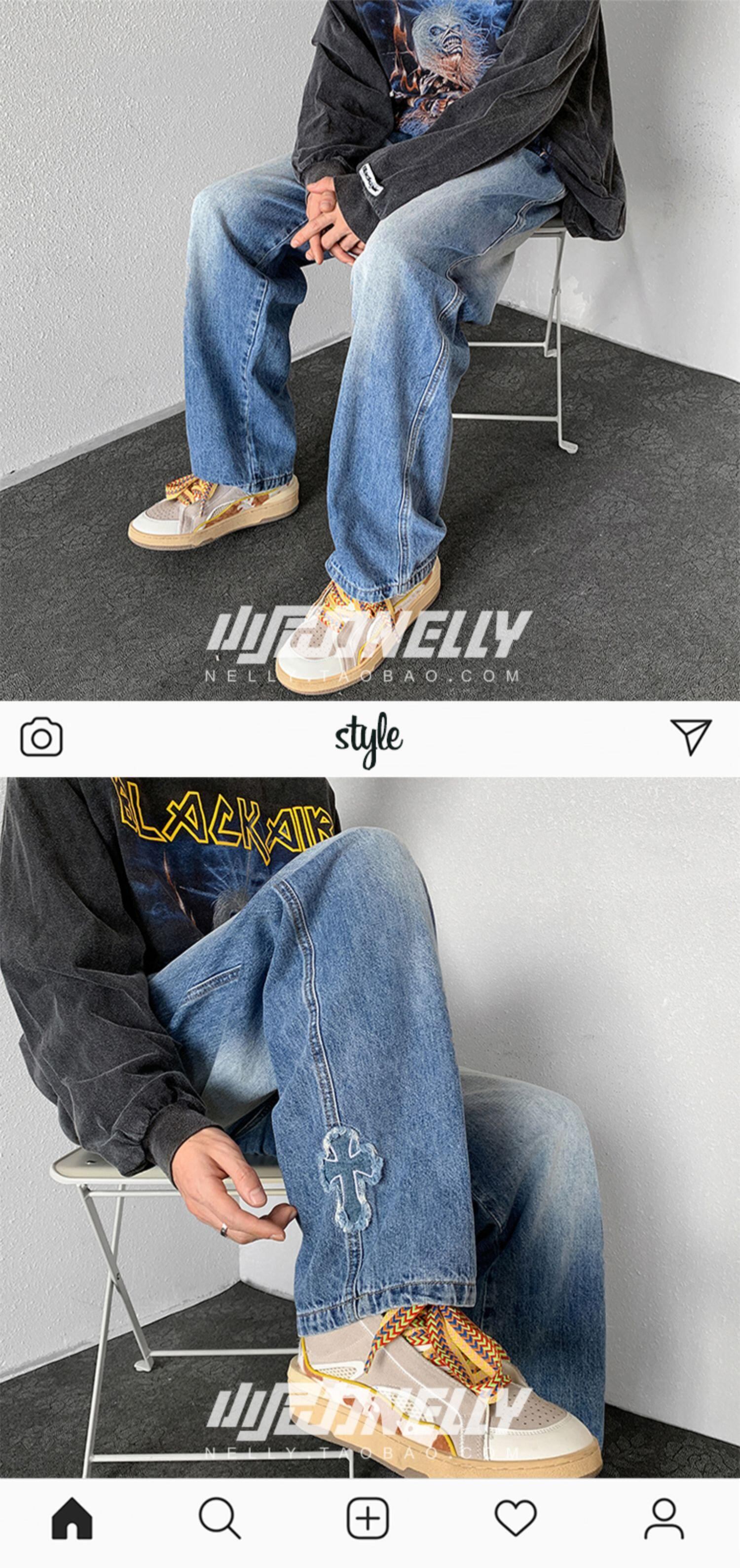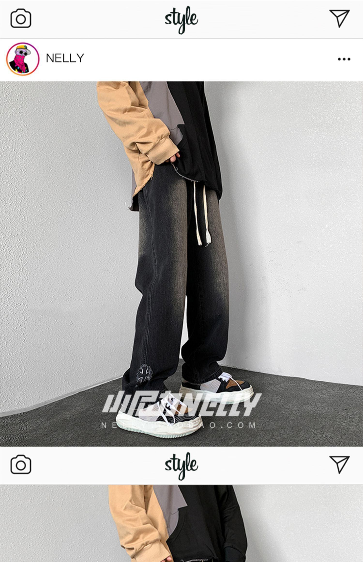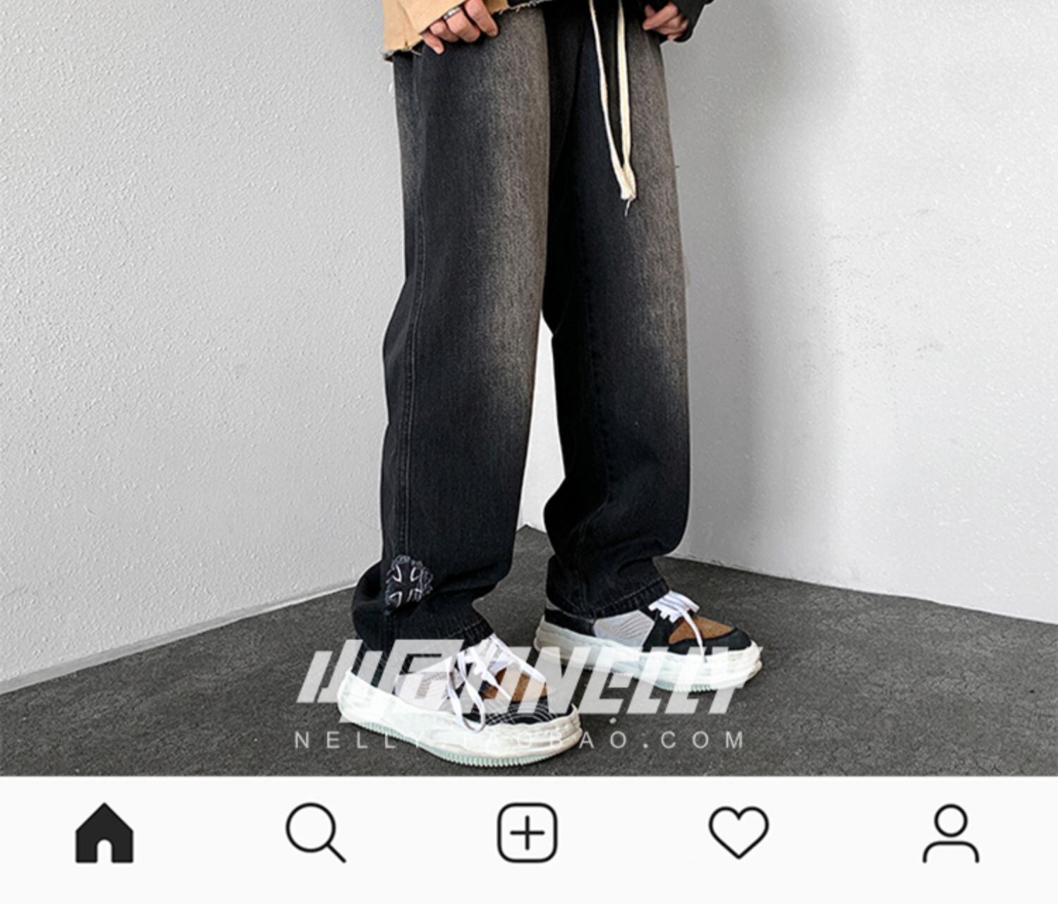 ブラックジーンズ オータムルーズカジュアルワイドレッグパンツ ストリート 秋物 ワイドパンツ 12/9 メンズ アパレル 秋 冬 mi1736540274209