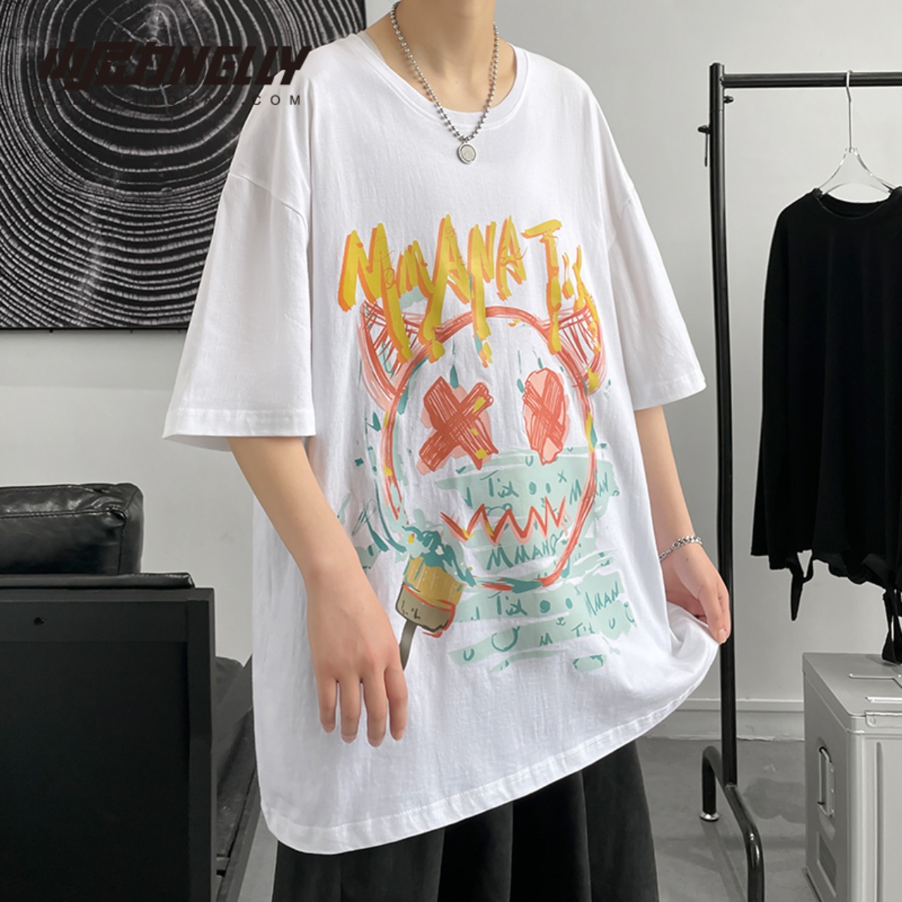 スタンダードサマープリントルーズTシャツ レディース レトロ 夏物 12/9 メンズ アパレル 秋 冬 mi1784041476083