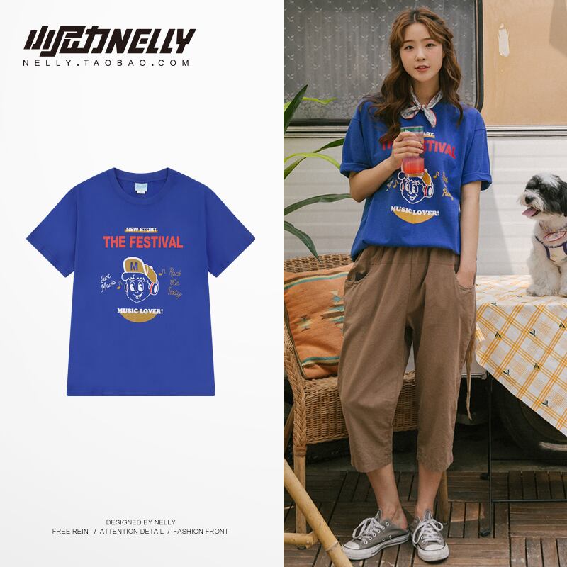 サマー自然派プリントルーズラウンドネックレディース シャツ 夏物 Oネック Tシャツ 12/9 メンズ アパレル 秋 冬 mi172365727506