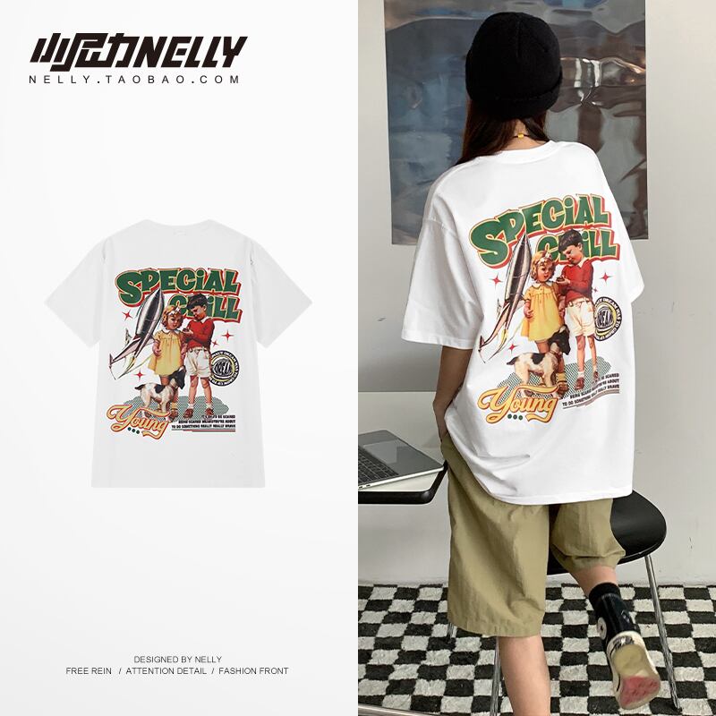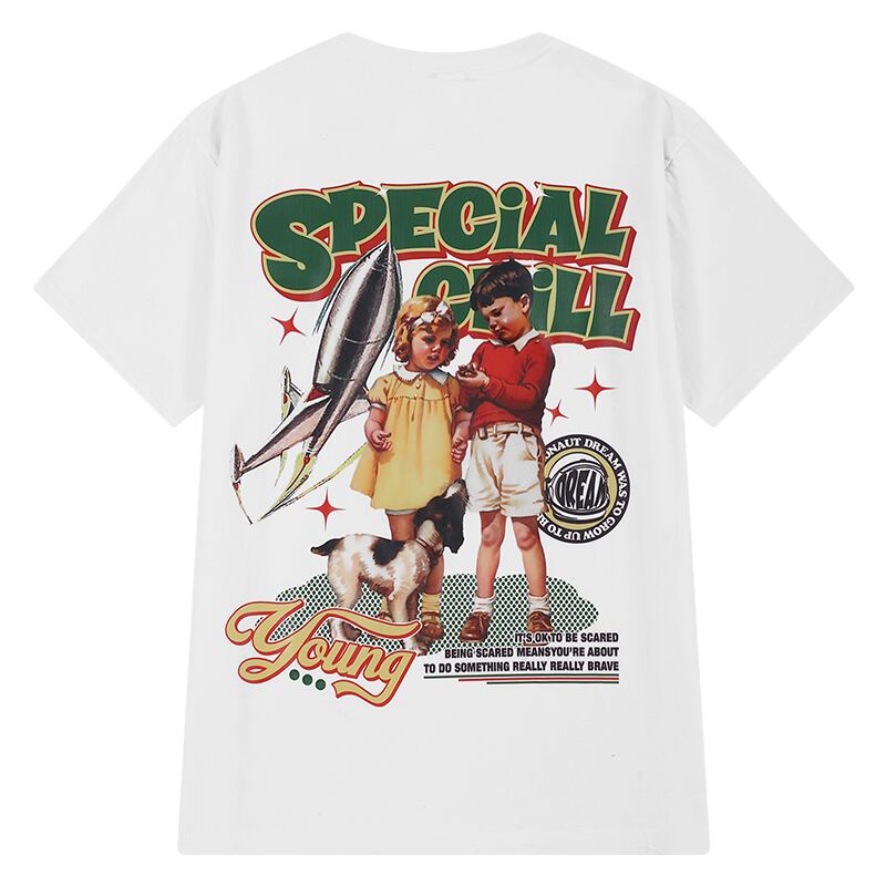 サマーTシャツ ルーズトップス ラウンドネックホワイト コットン 夏物 Oネック 12/9 メンズ アパレル 秋 冬 mi1722695491106