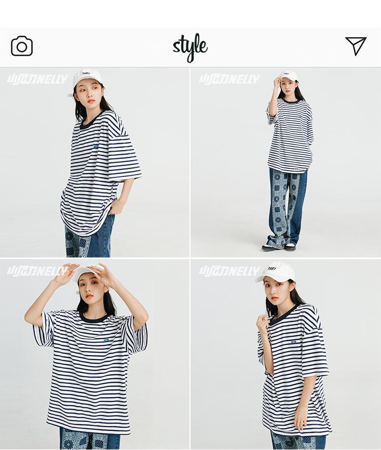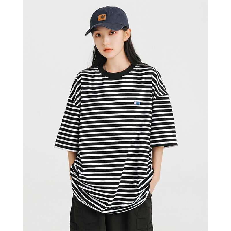ストライプTシャツ ラウンドネックサマールーズ コットン 夏物 Oネック 12/9 メンズ アパレル 秋 冬 mi1779049749938