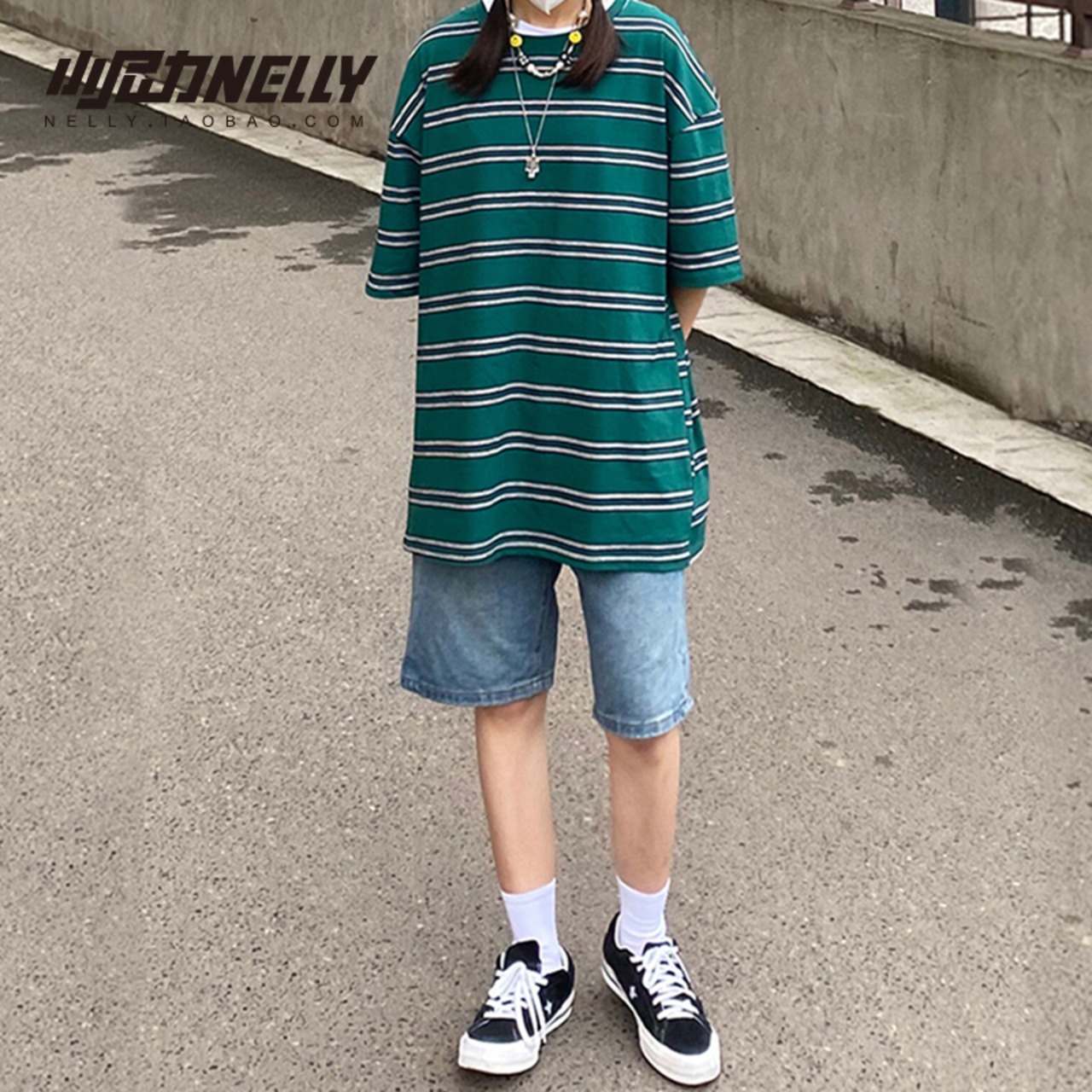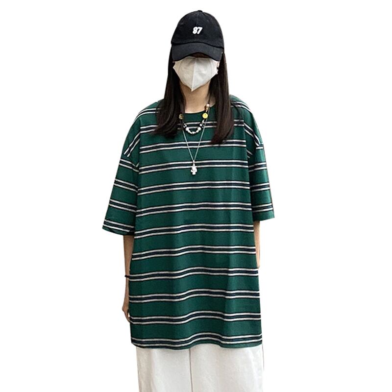 サマーストライプTシャツ スタイルルーズラウンドネックトップス 夏物 Oネック 12/9 メンズ アパレル 秋 冬 mi1774828636015