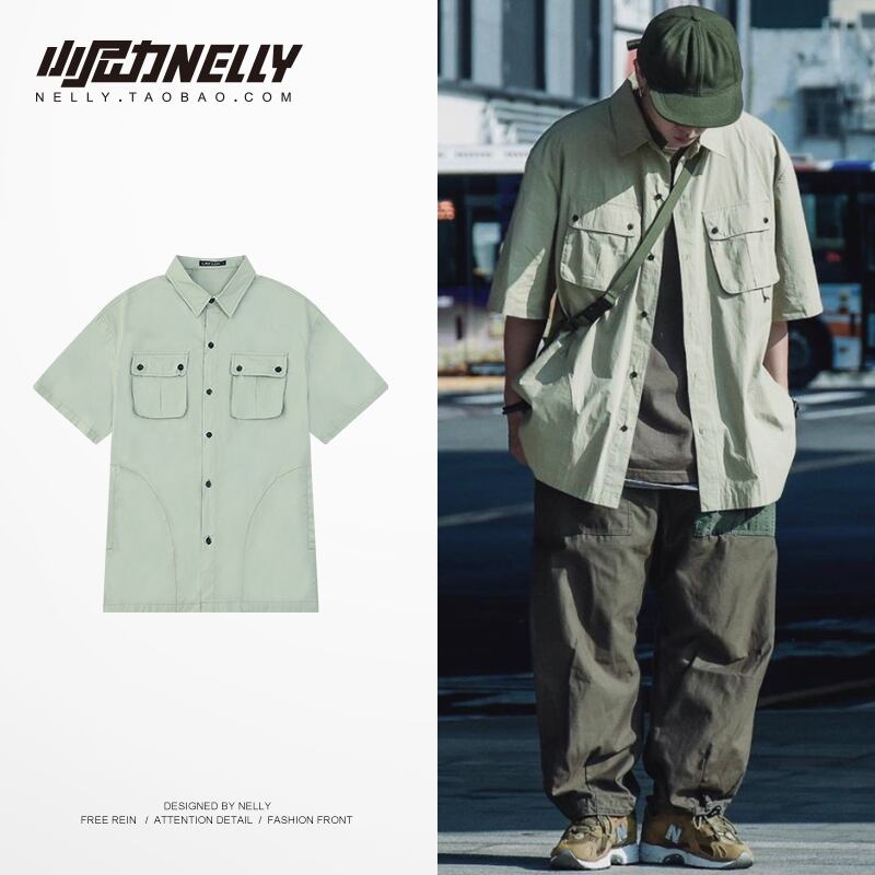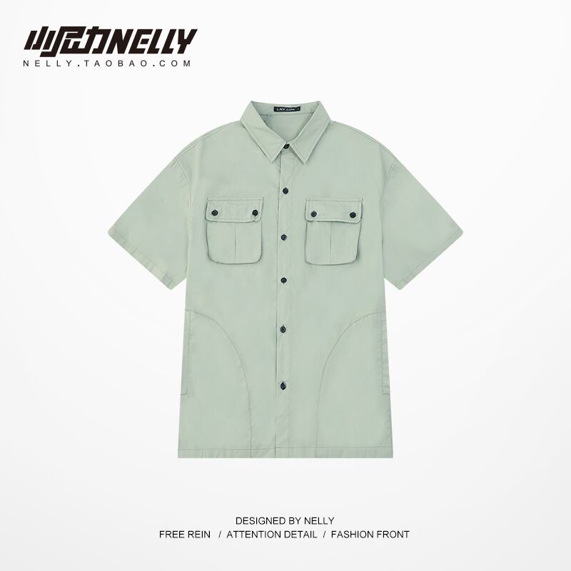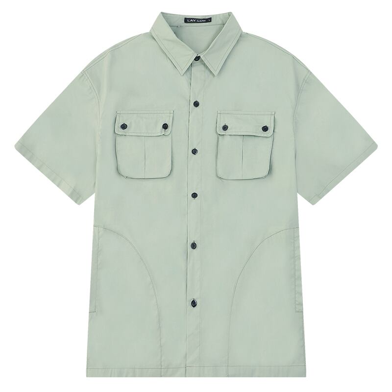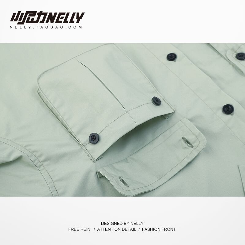 スタンダードポケットシャツ ソリッド カラーTシャツ ルーズカジュアルトップス レトロ ソリッドカラー 12/9 メンズ アパレル 秋 冬 mi1778643942205