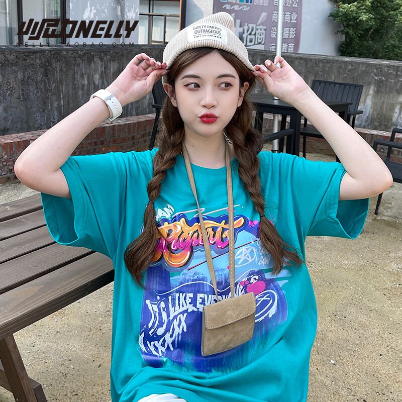 サマープリントTシャツ レディースルーズカジュアルトップス ストリート 夏物 12/9 メンズ アパレル 秋 冬 mi1734506580565