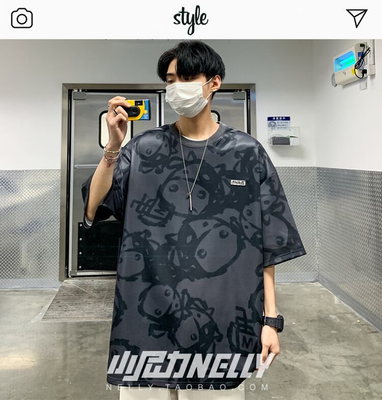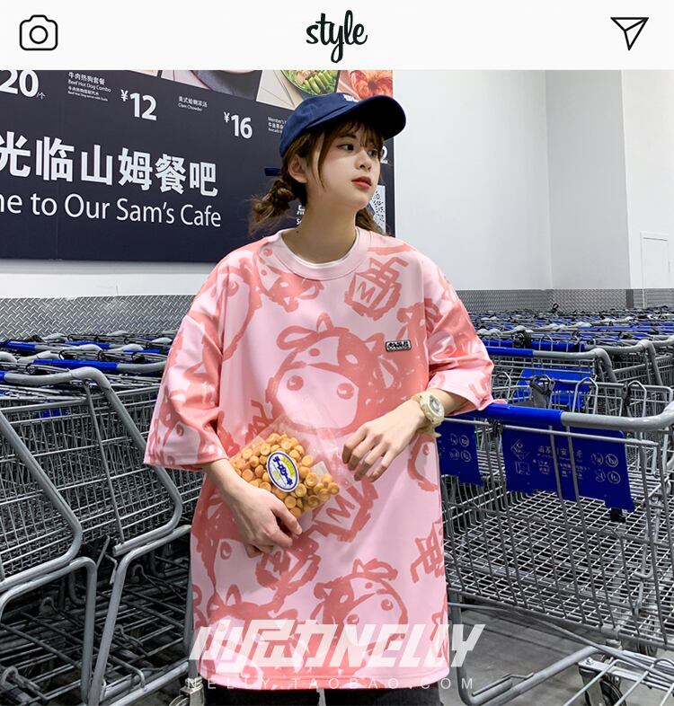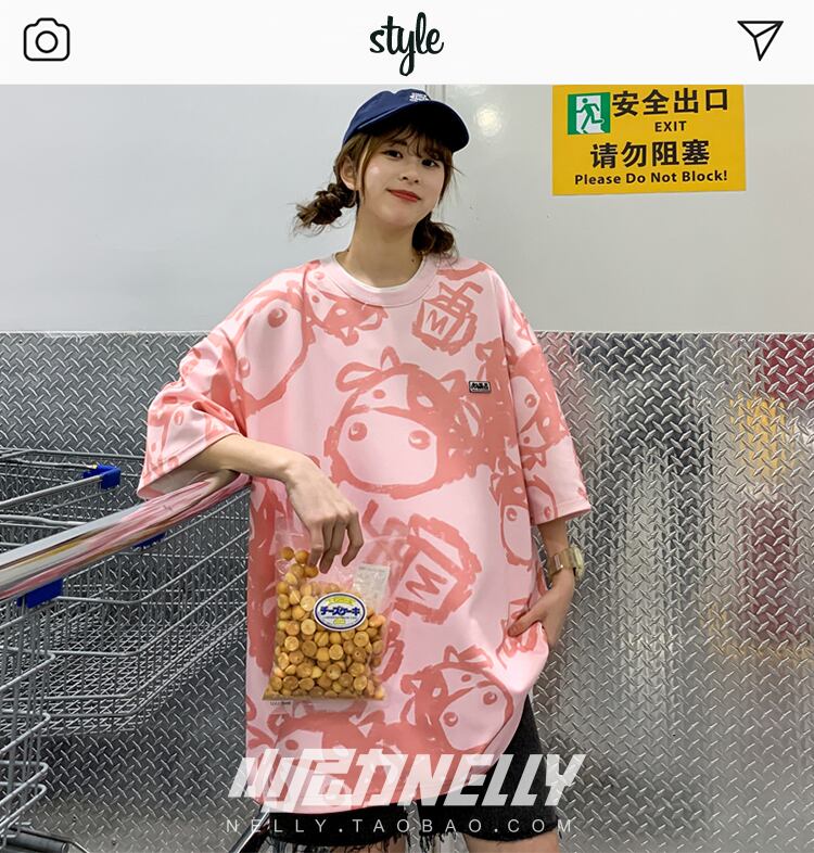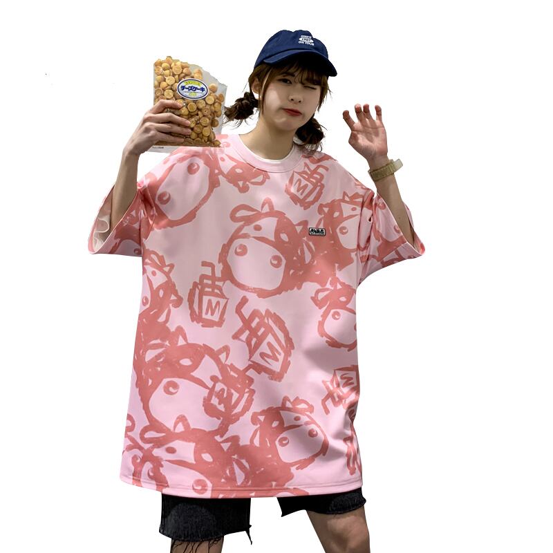 スタイルプリント柄Tシャツ レディーススタンダードルーズカジュアル レトロ かわいい 12/9 メンズ アパレル 秋 冬 mi1714960310978