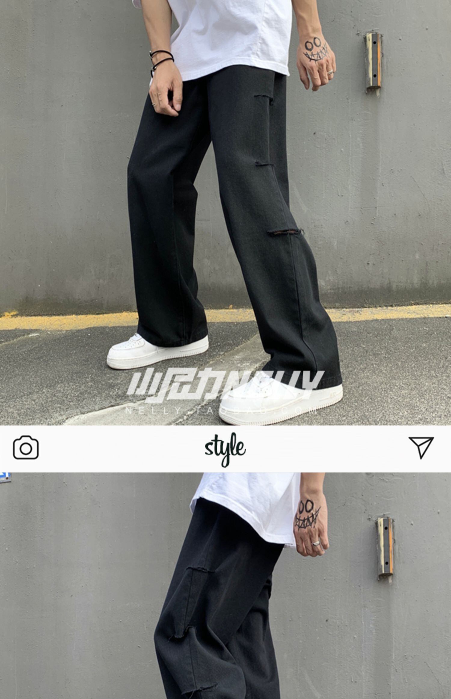 スタンダードソリッド カラージーンズ ルーズカジュアル レトロ ソリッドカラー 12/9 メンズ アパレル 秋 冬 mi1782681716183