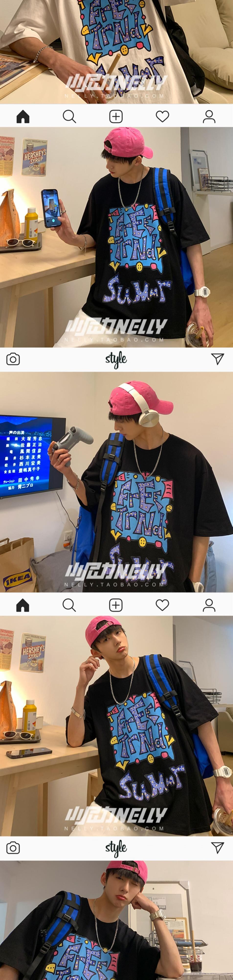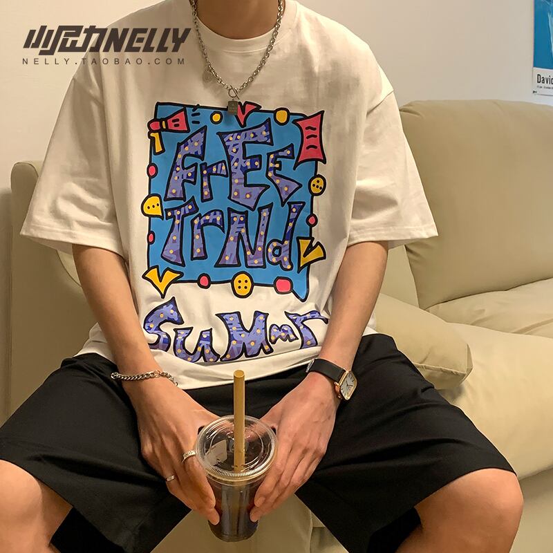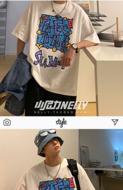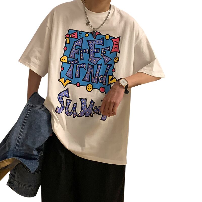 サマープリントTシャツ レディースルーズカジュアルトップス ストリート 夏物 12/9 メンズ アパレル 秋 冬 mi1748249831010