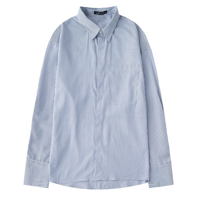 ルーズストライプシャツ レディース ロング コットン 12/9 メンズ アパレル 秋 冬 mi1762841802384