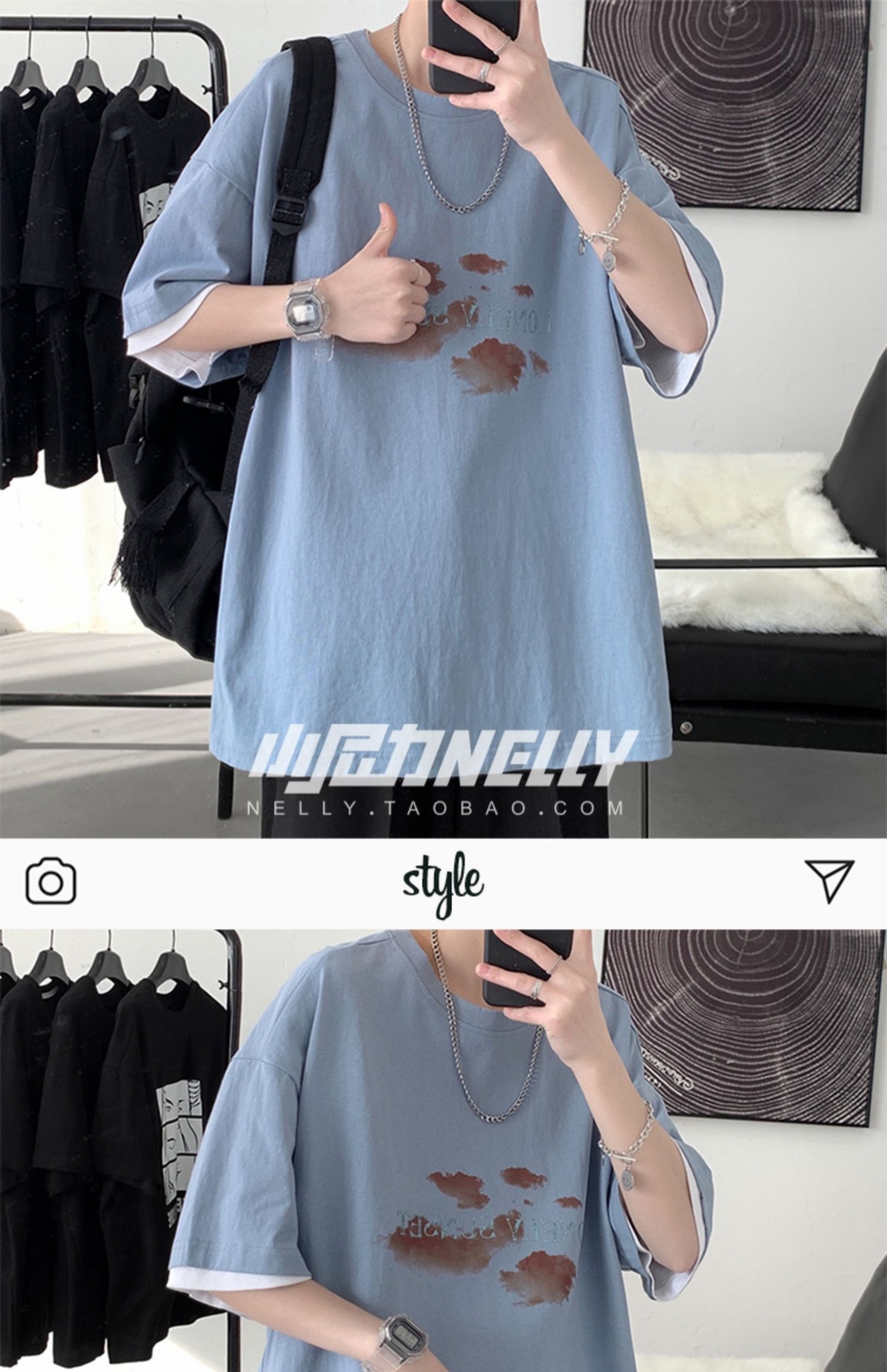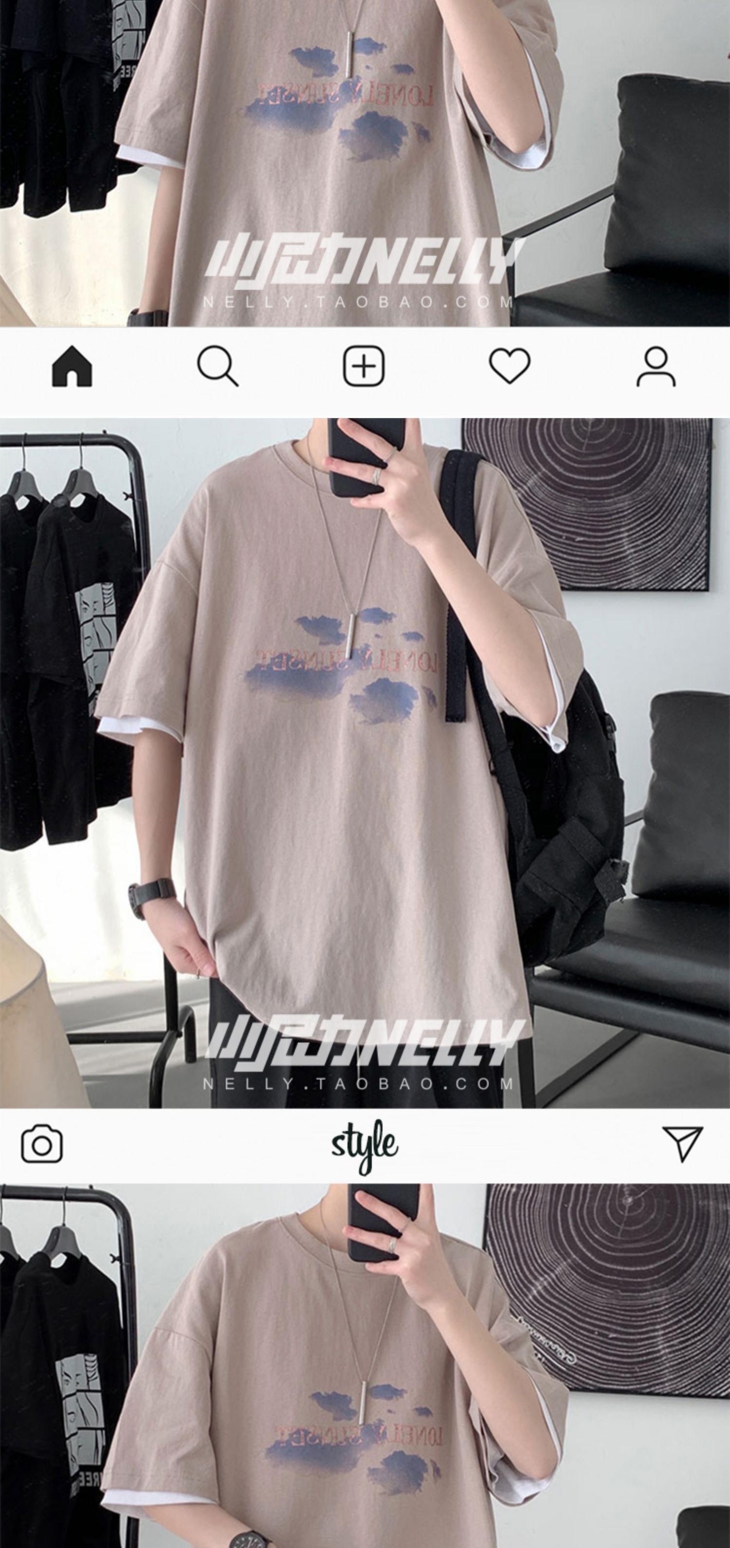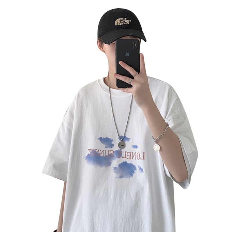 サマースタンダードプリントルーズTシャツ レトロ 夏物 12/9 メンズ アパレル 秋 冬 mi1766530806457