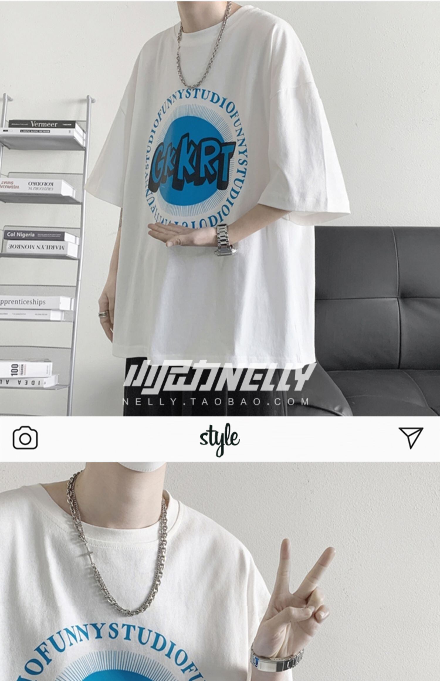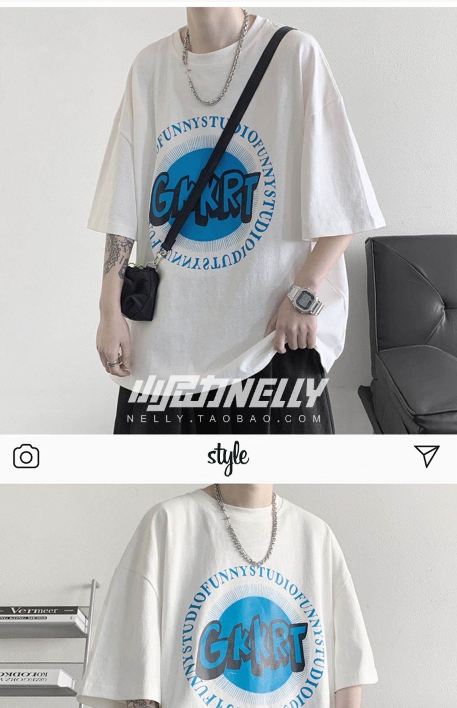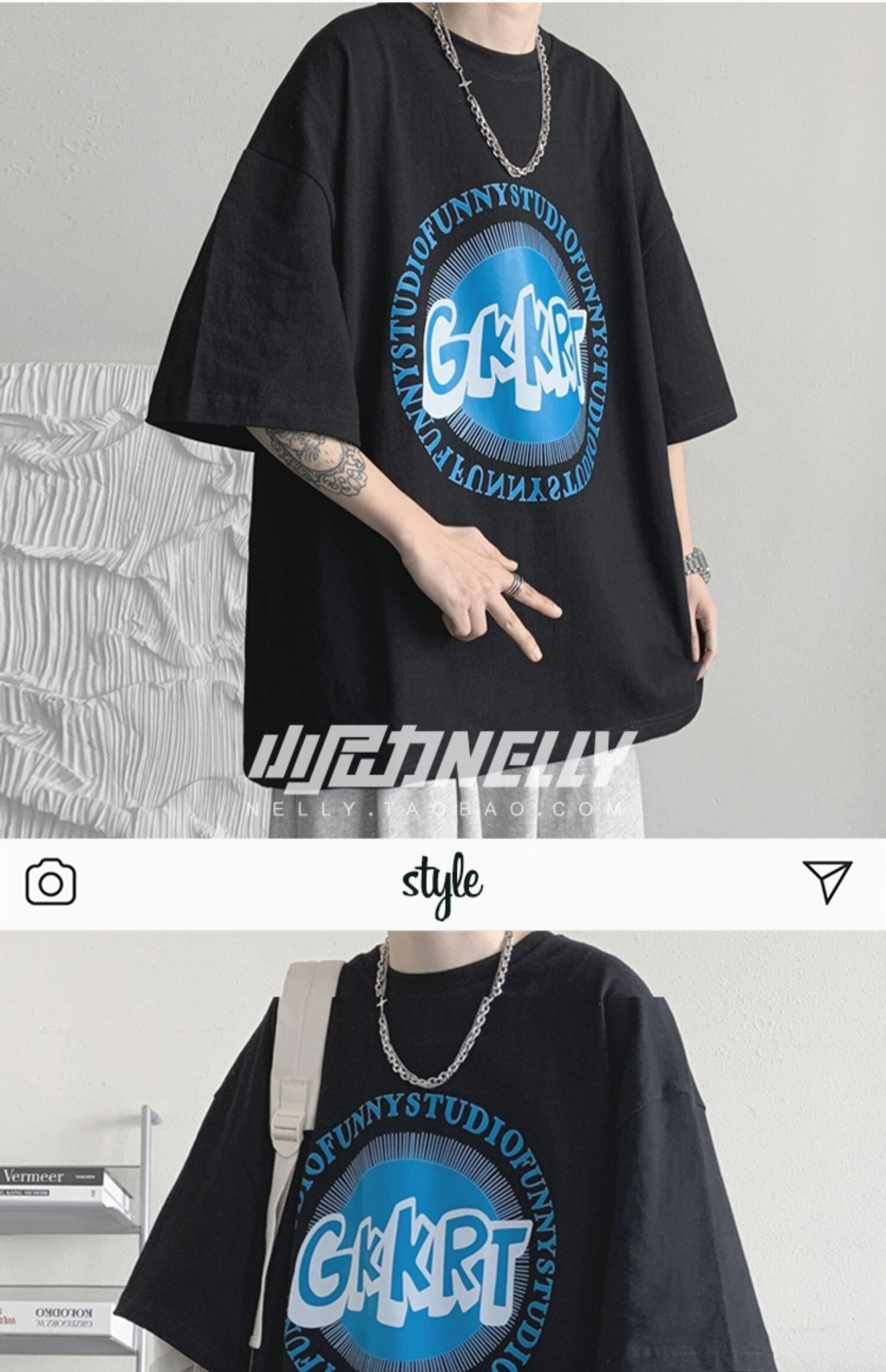 スタンダードプリント柄Tシャツ レディースサマールーズカジュアル レトロ ストリート 夏物 12/9 メンズ アパレル 秋 冬 mi1766495479038