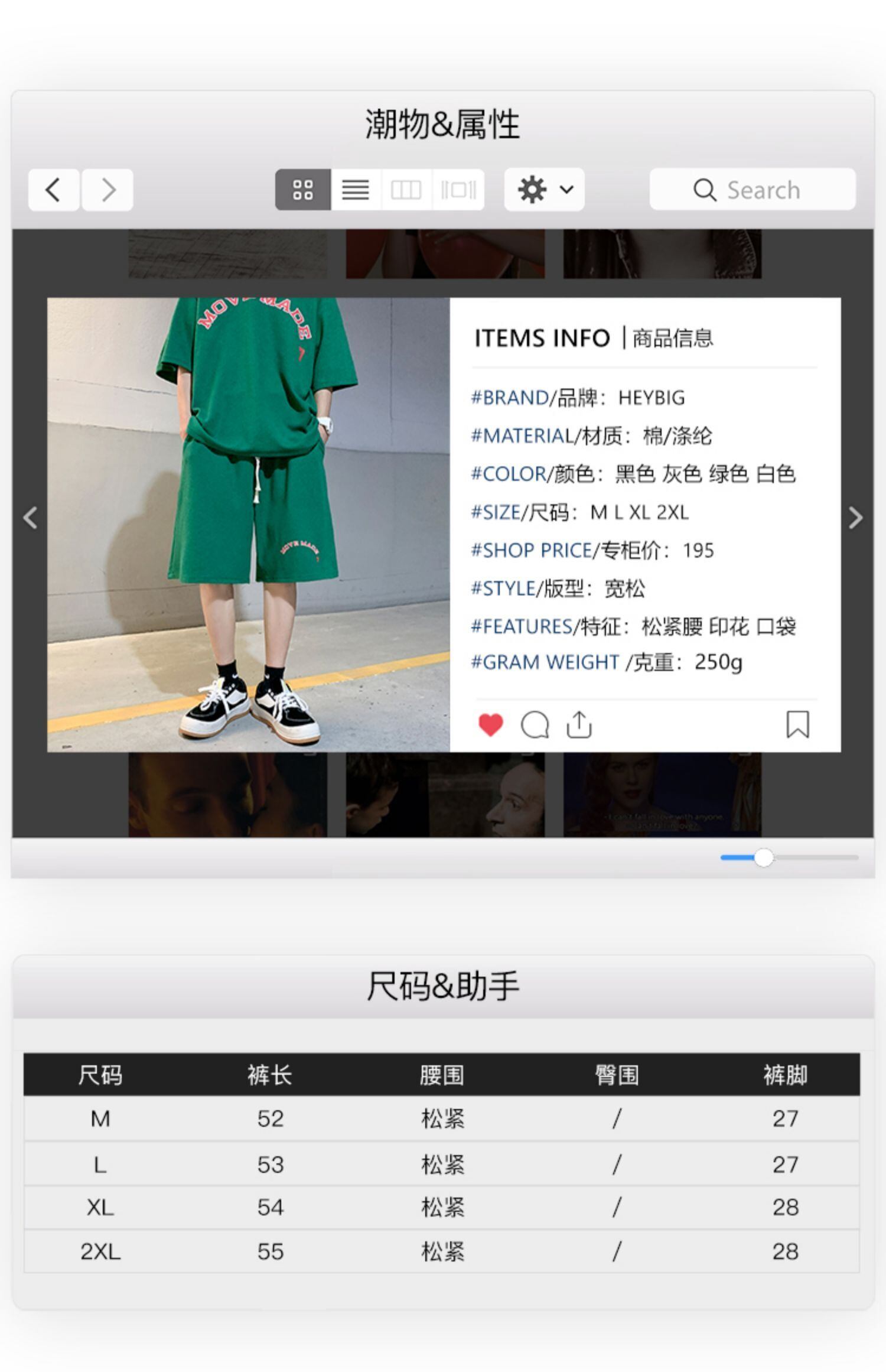 色:黒(上),グレー(上),緑(上),白(上),黒いズボン),グレー(ズボン),緑(ズボン),ホワイト(ズボン)