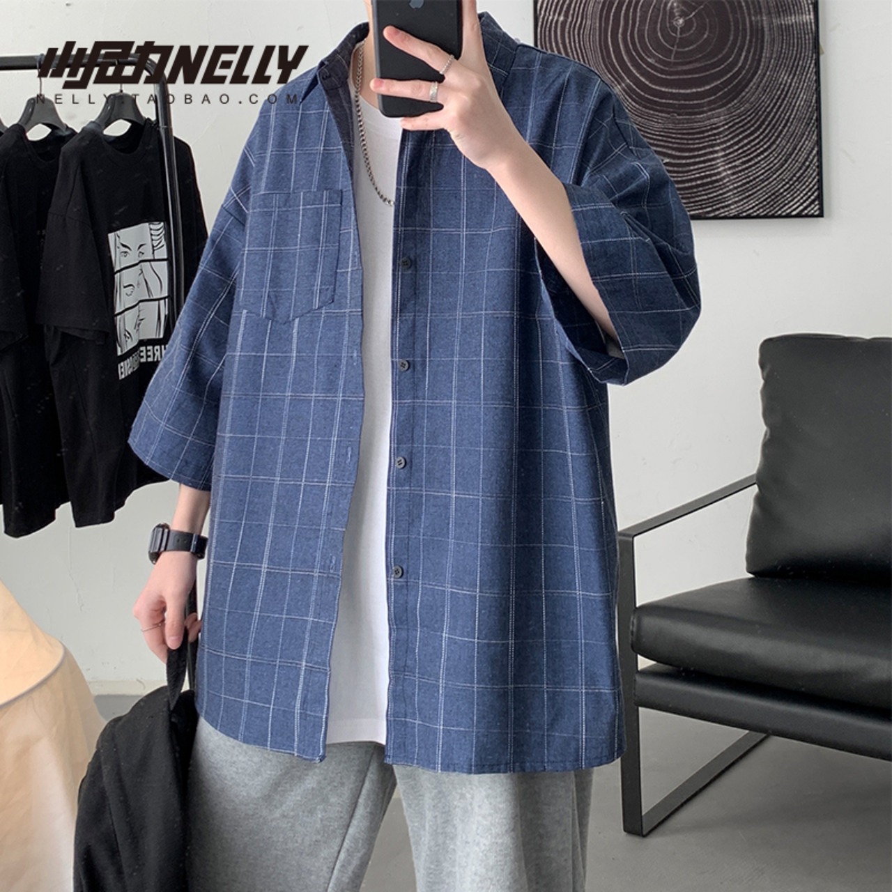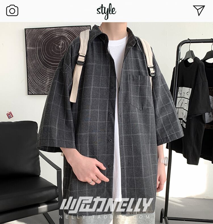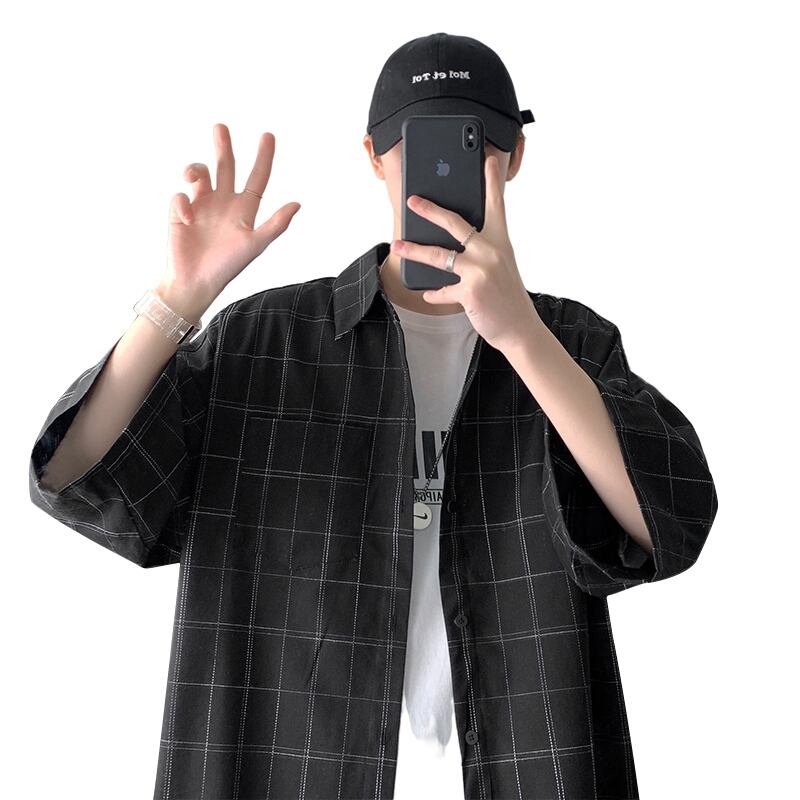 サマースタンダードカジュアルシャツ ルーズ格子柄スタイル レトロ 夏物 12/9 メンズ アパレル 秋 冬 mi1729749225523