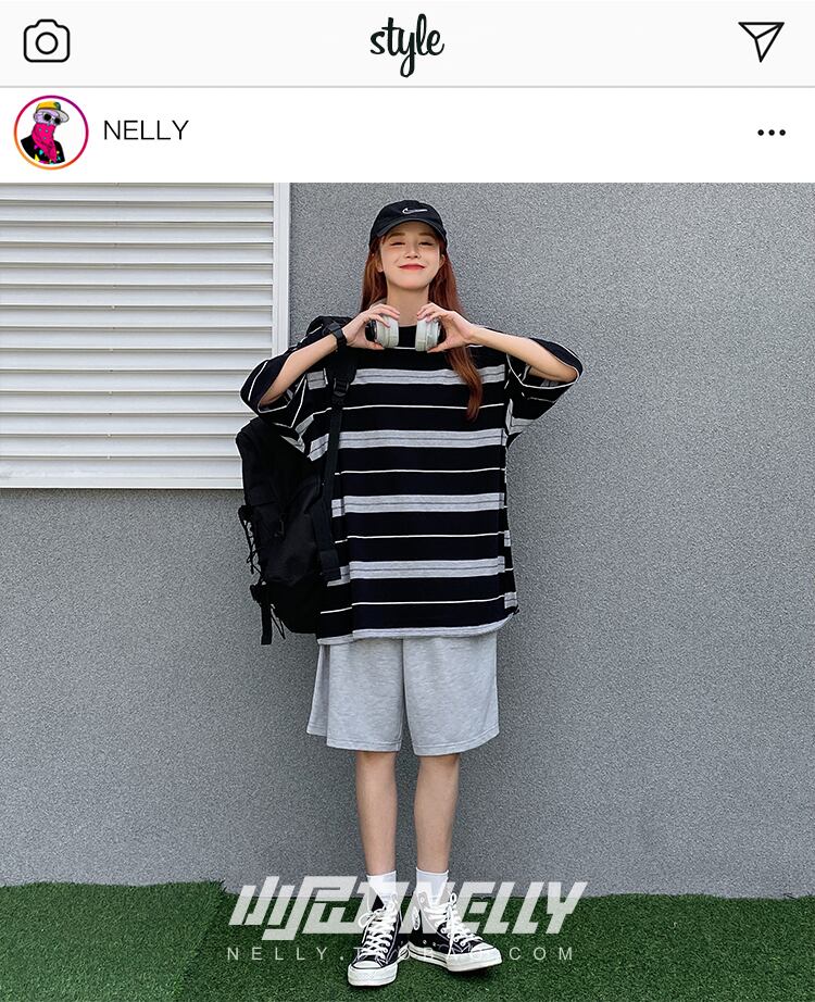 ルーズストライプカジュアルラウンドネックTシャツ コットン Oネック 12/9 メンズ アパレル 秋 冬 mi1771766215157