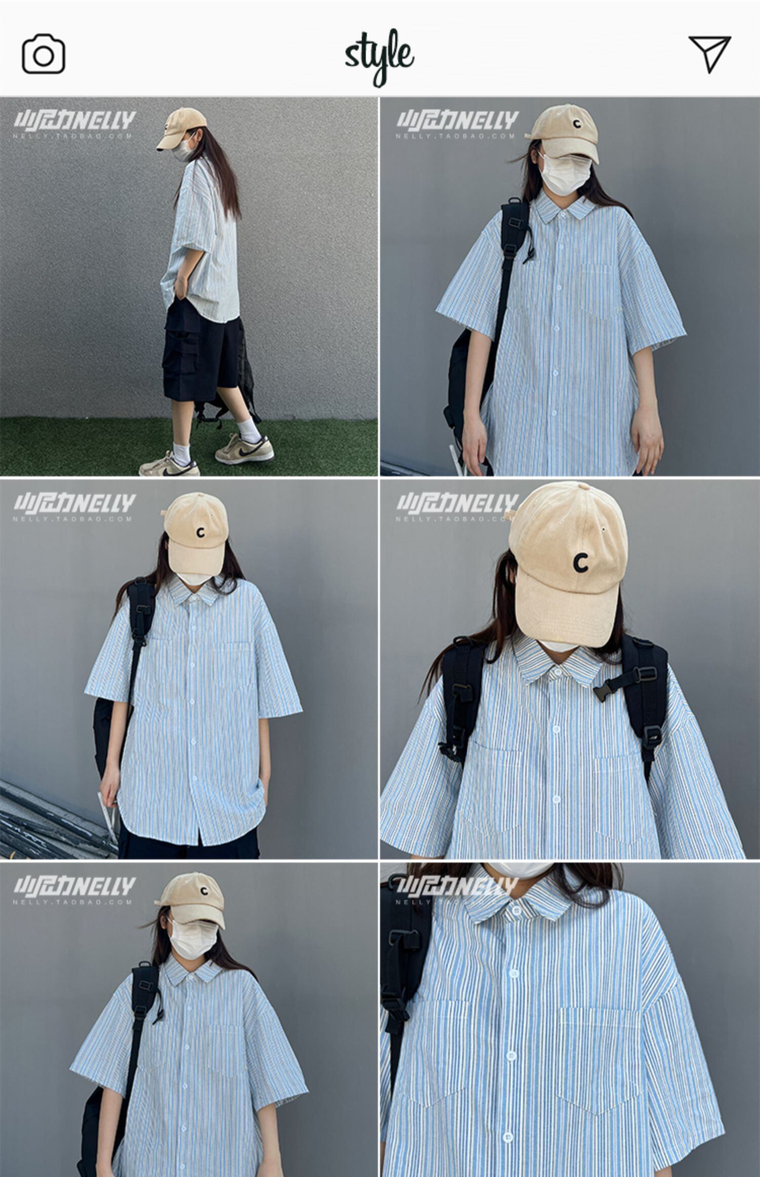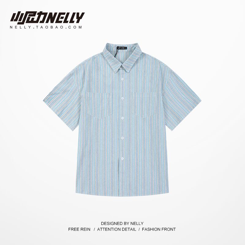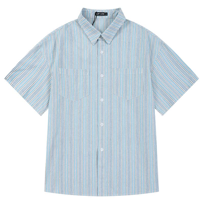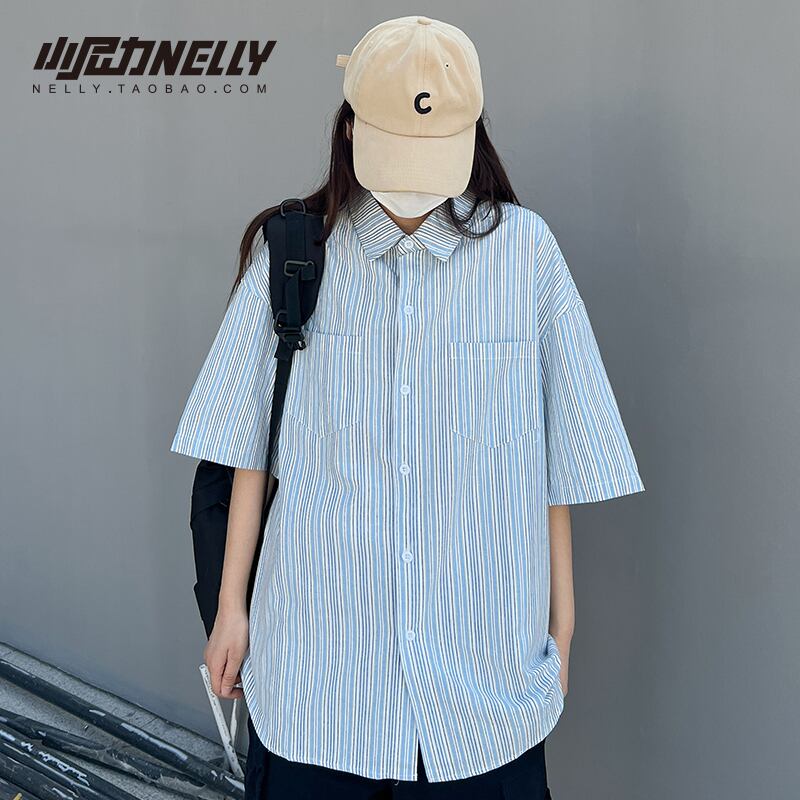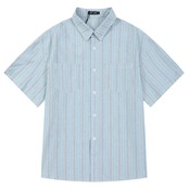 ブルーストライプシャツ レディースサマールーズスタンダードトップス レトロ 夏物 12/9 メンズ アパレル 秋 冬 mi1723979605231