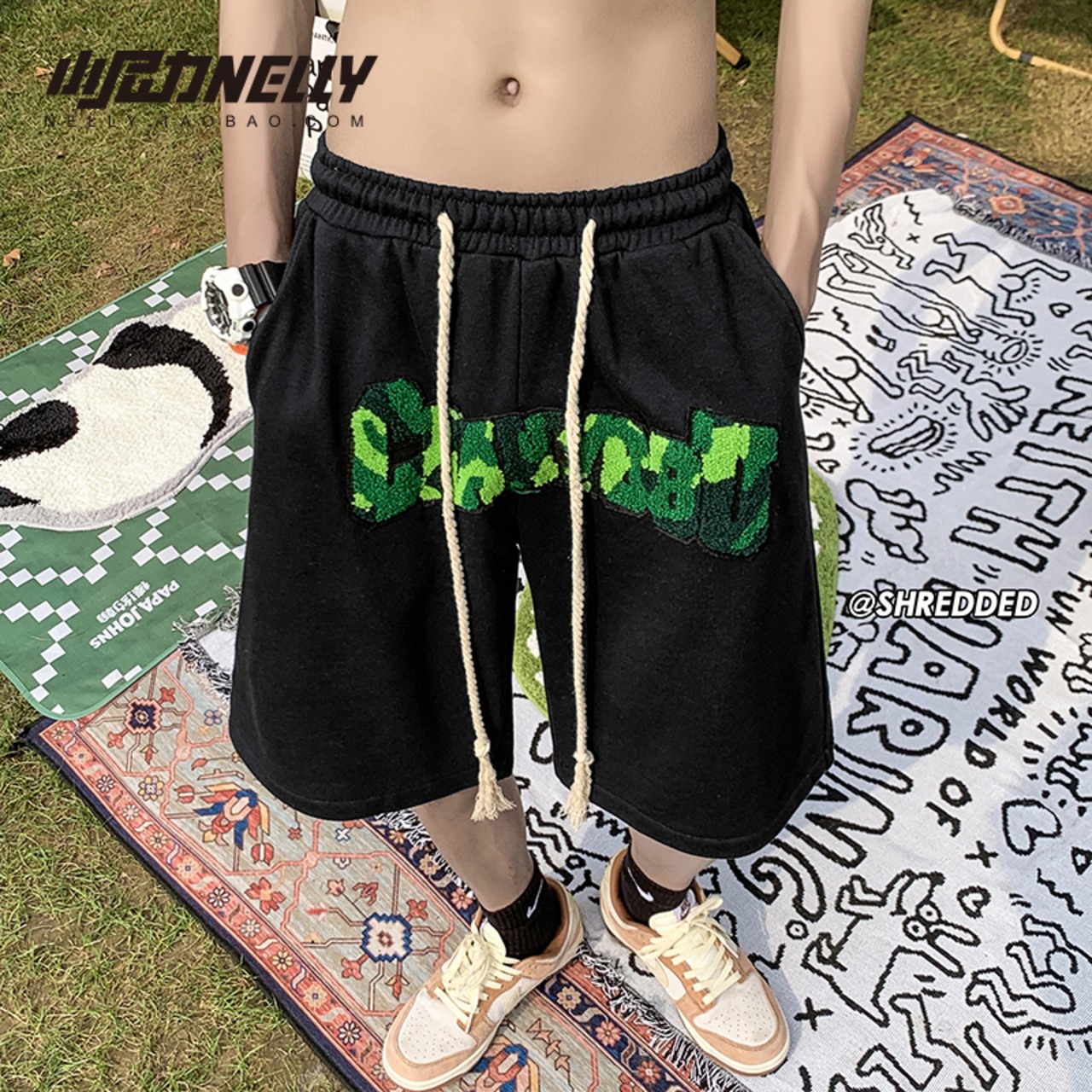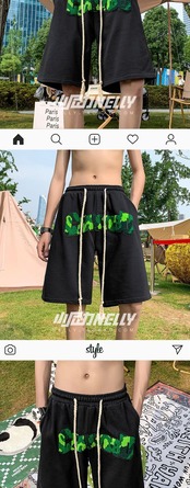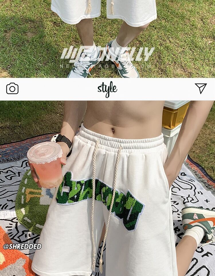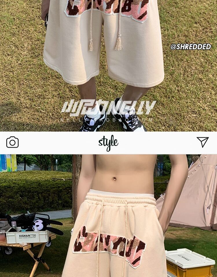 スタンダードショーツ サマーパンツ レッド レトロ ストリート 刺繍 大きめサイズ 夏物 ブルマー 12/9 メンズ アパレル 秋 冬 mi1719150746257