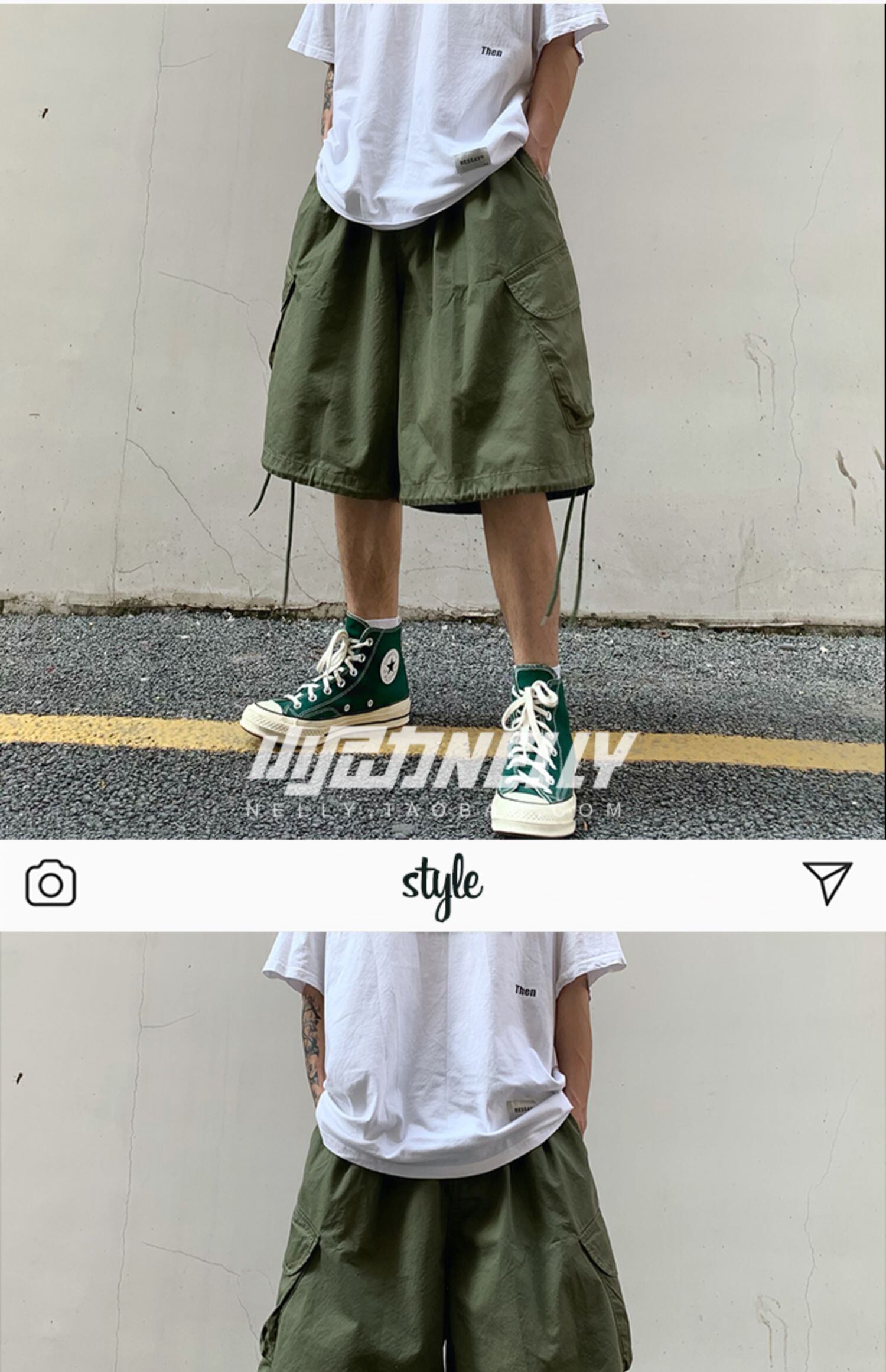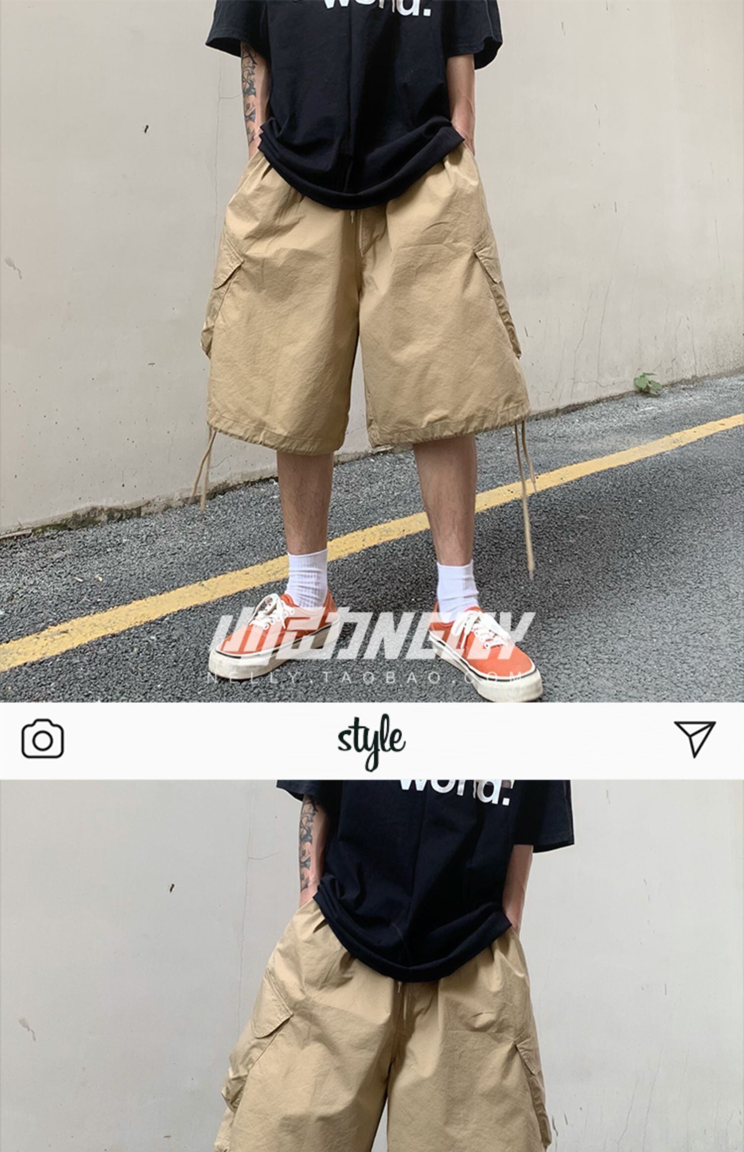 カーキオーバーオール ショーツ ルーズカジュアルパンツ ブルマー ポケット多め マルチポケット 12/9 メンズ アパレル 秋 冬 mi1775772983360