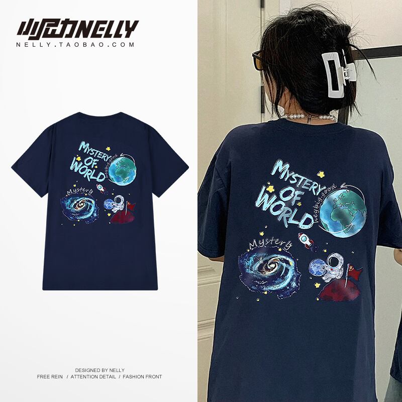サマーダークブループリント柄ルーズTシャツ 薄手 夏物 12/9 メンズ アパレル 秋 冬 mi1764439608638