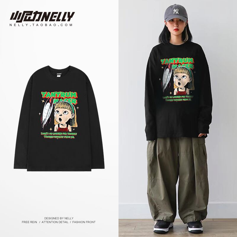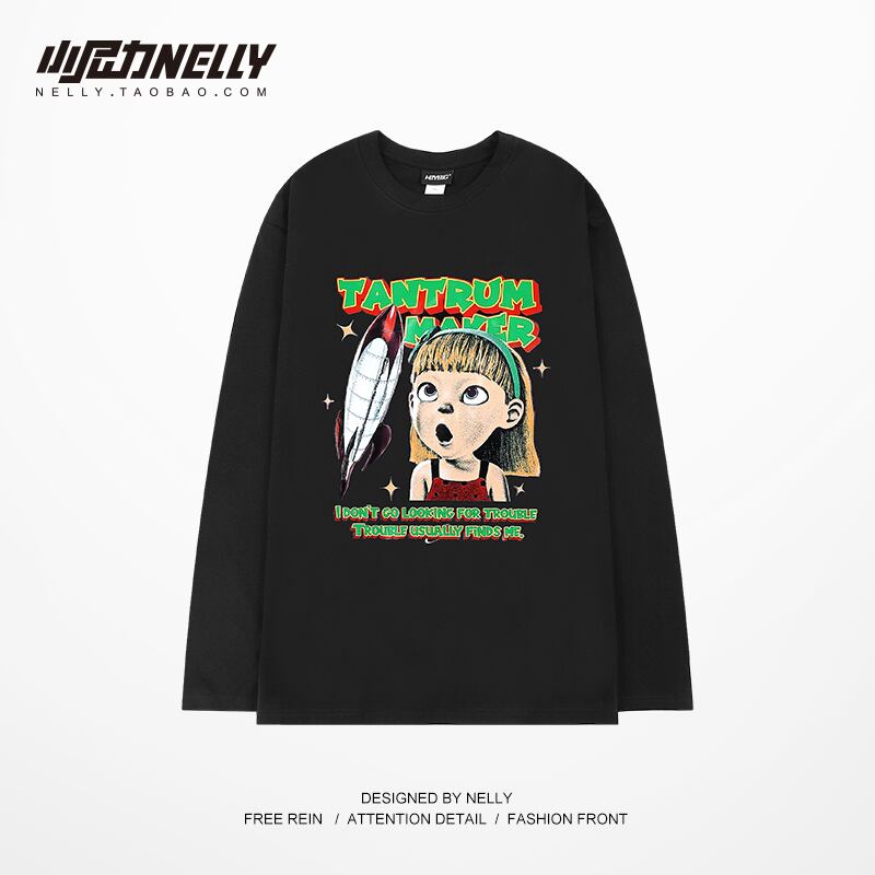 ルーズTシャツ スタンダードスプリングオータムラウンドネックトップス ロング レトロ ストリート 春物 秋物 Oネック 12/9 メンズ アパレル 秋 冬 mi1779683542160