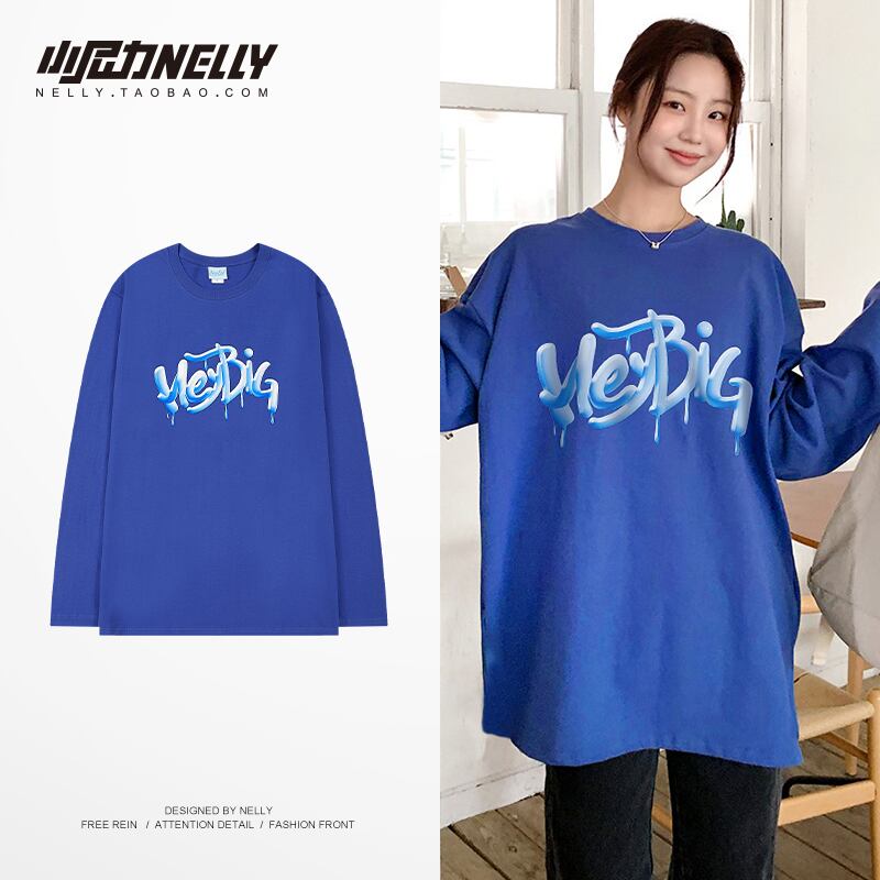 サマーブルーラウンドネックルーズTシャツ シャツ ロング 夏物 Oネック 12/9 メンズ アパレル 秋 冬 mi1772442217471