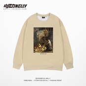 スタンダードホワイトプリントラウンドネックセーター カジュアルルーズレディースTシャツ レトロ Oネック 12/9 メンズ アパレル 秋 冬 mi1770733483512