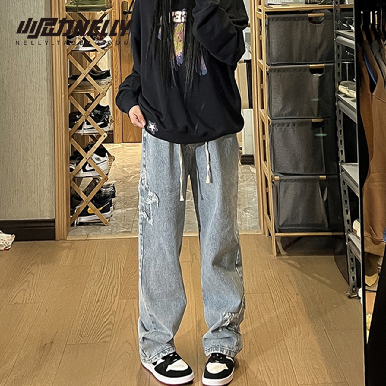 ジーンズ スプリングオータムスタンダードルーズロングパンツ レトロ ストリート 春物 秋物 12/9 メンズ アパレル 秋 冬 mi1726302449493