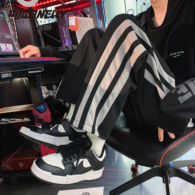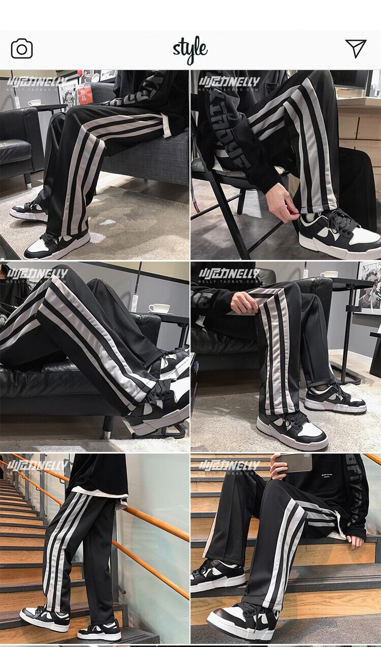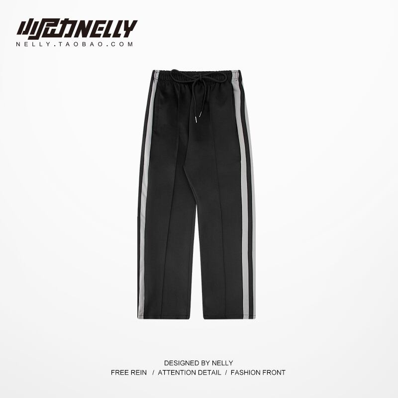 ストライプパンツ スプリングオータムルーズカジュアルスタイルブラック 春物 秋物 12/9 メンズ アパレル 秋 冬 mi1736700632845