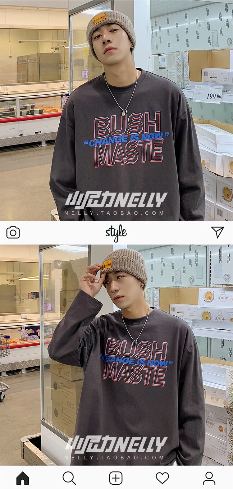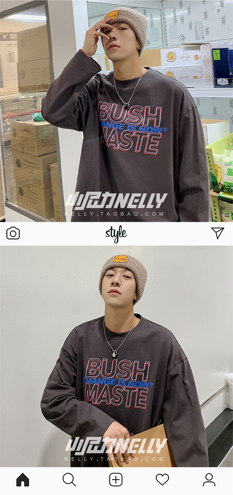 スプリングオータムTシャツ シャツ ルーズラウンドネックセーター ロング ストリート 春物 秋物 Oネック 12/9 メンズ アパレル 秋 冬 mi173546538152