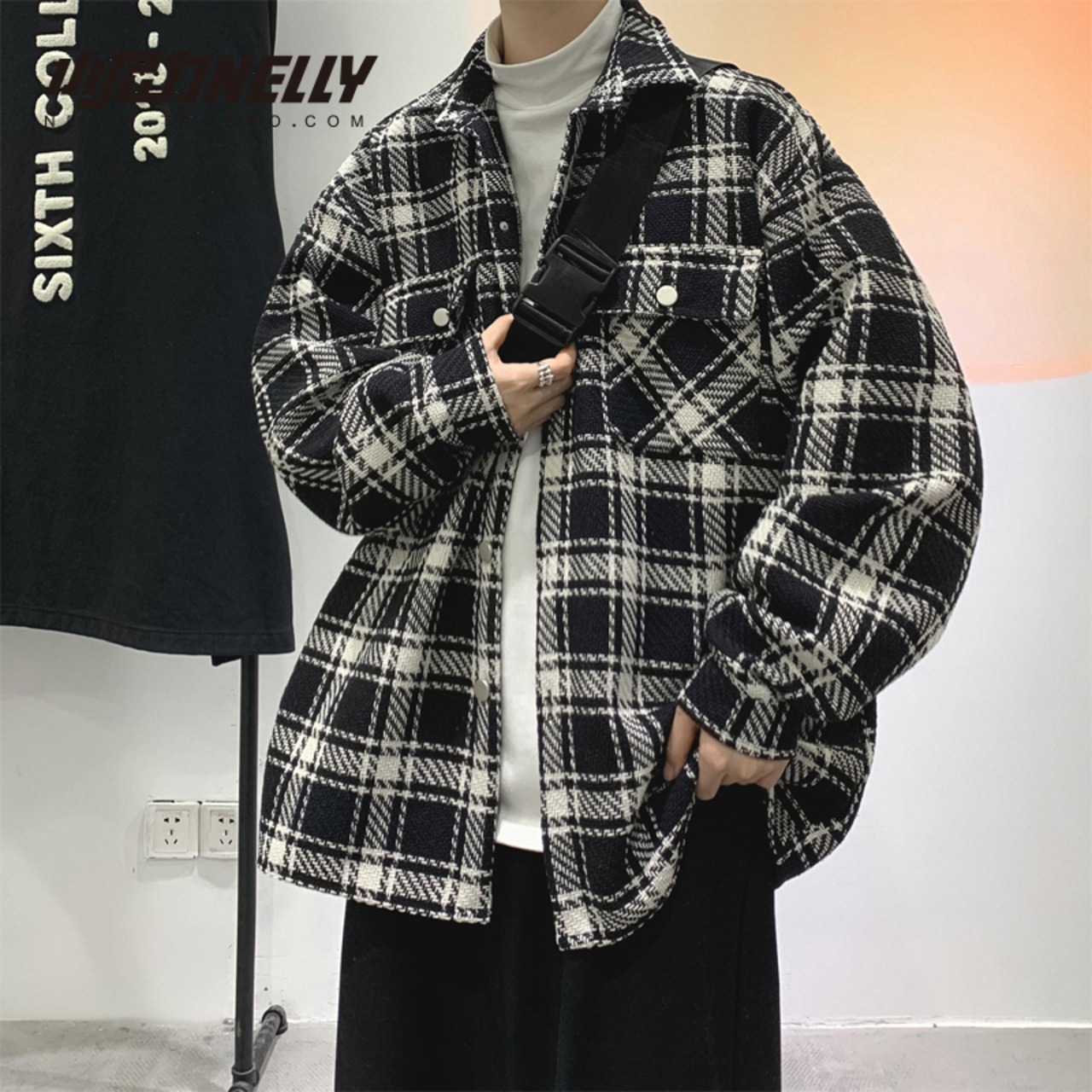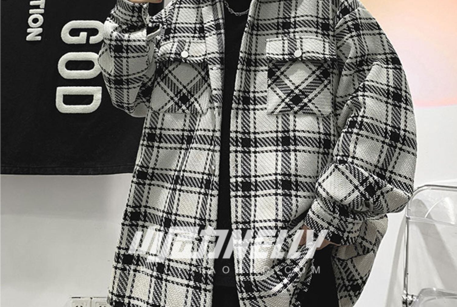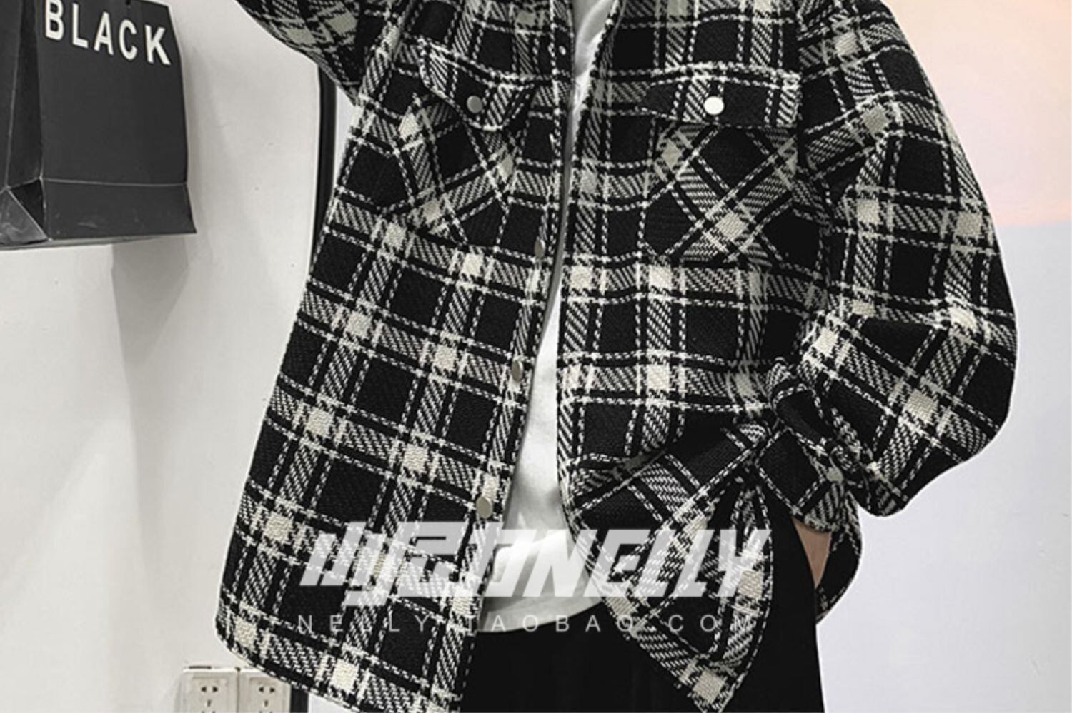 色:黒のチェック柄,白い格子縞