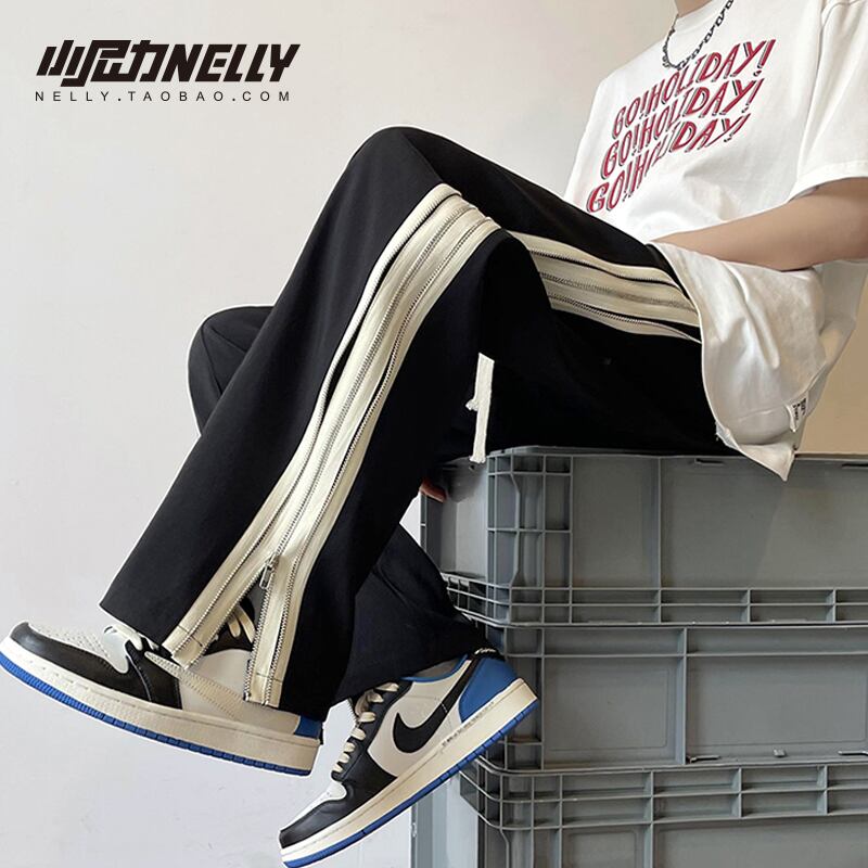 カジュアルパンツ サマー薄手ルーズジッパースリット ストリート 夏物 12/9 メンズ アパレル 秋 冬 mi1734484934024