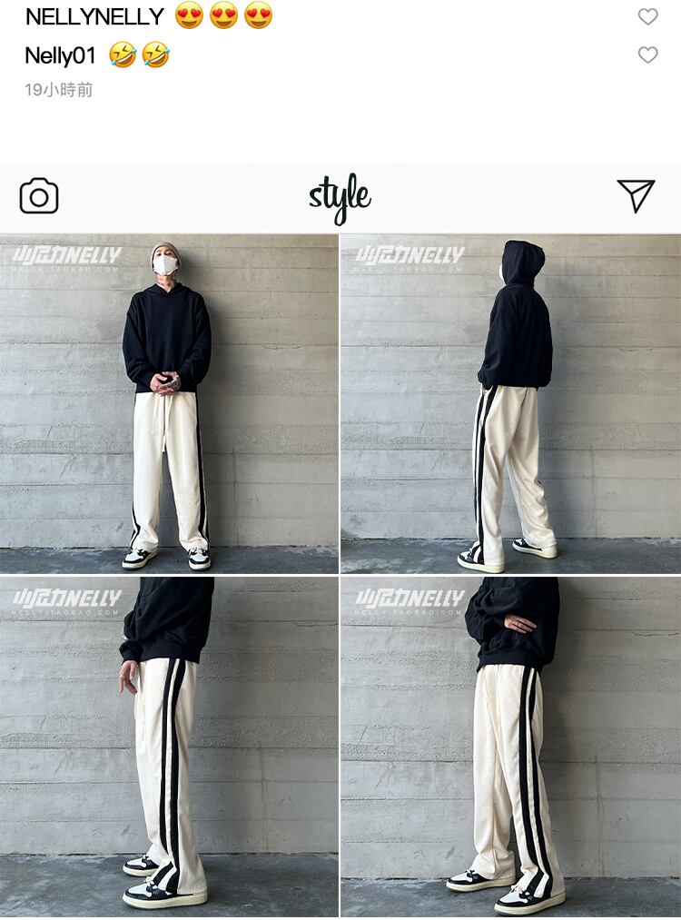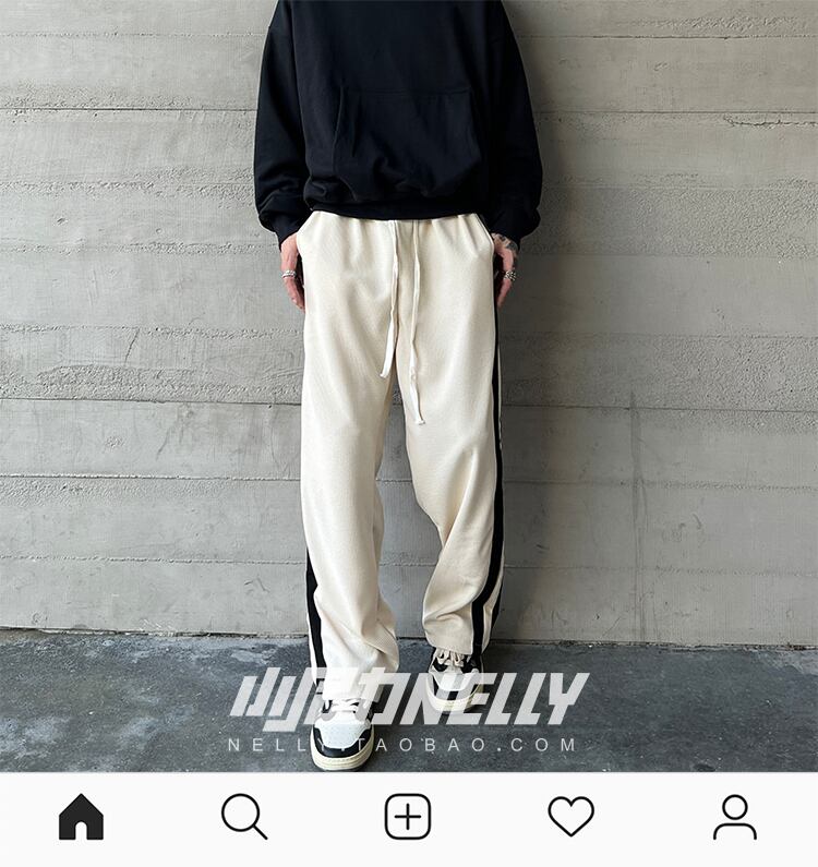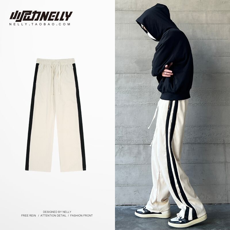 スプリングサマーギャザーサイドストライプパンツ ルーズカジュアル ストリート 春物 夏物 12/9 メンズ アパレル 秋 冬 mi1738271555259